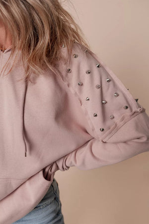 Drawstring Studded Shoulder Hoodie