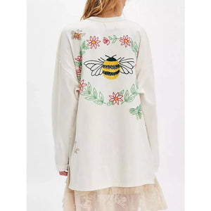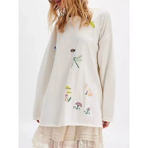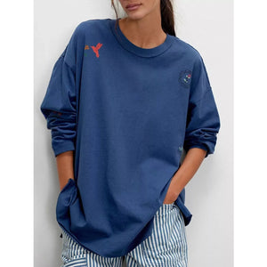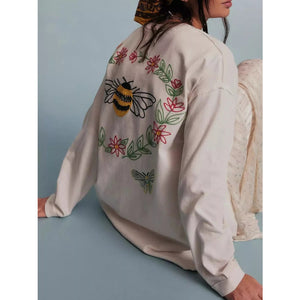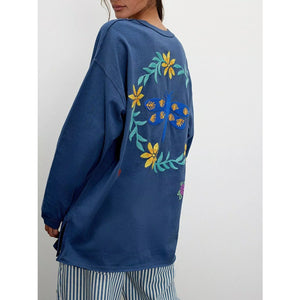 Embroidered Crew Neck Long Sleeve Sweatshirt