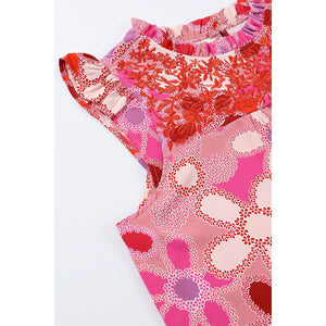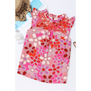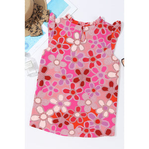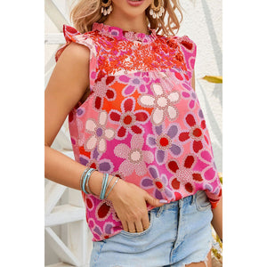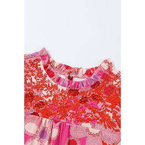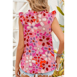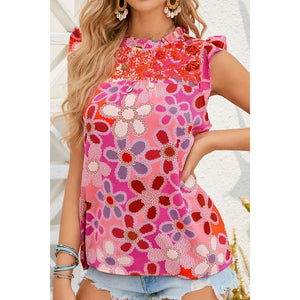 Embroidered Detail Floral Ruffle Cap Sleeve Blouse
