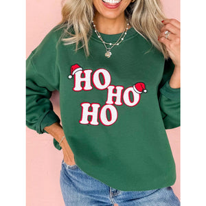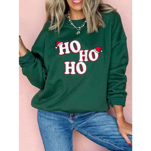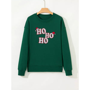 Embroidered Letter Christmas Round Neck Sweatshirt