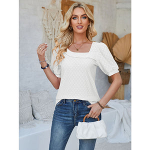 Eyelet Asymmetrical Neck Short Sleeve T-Shirt