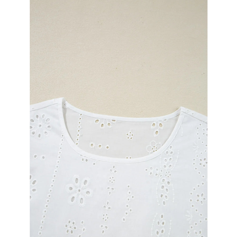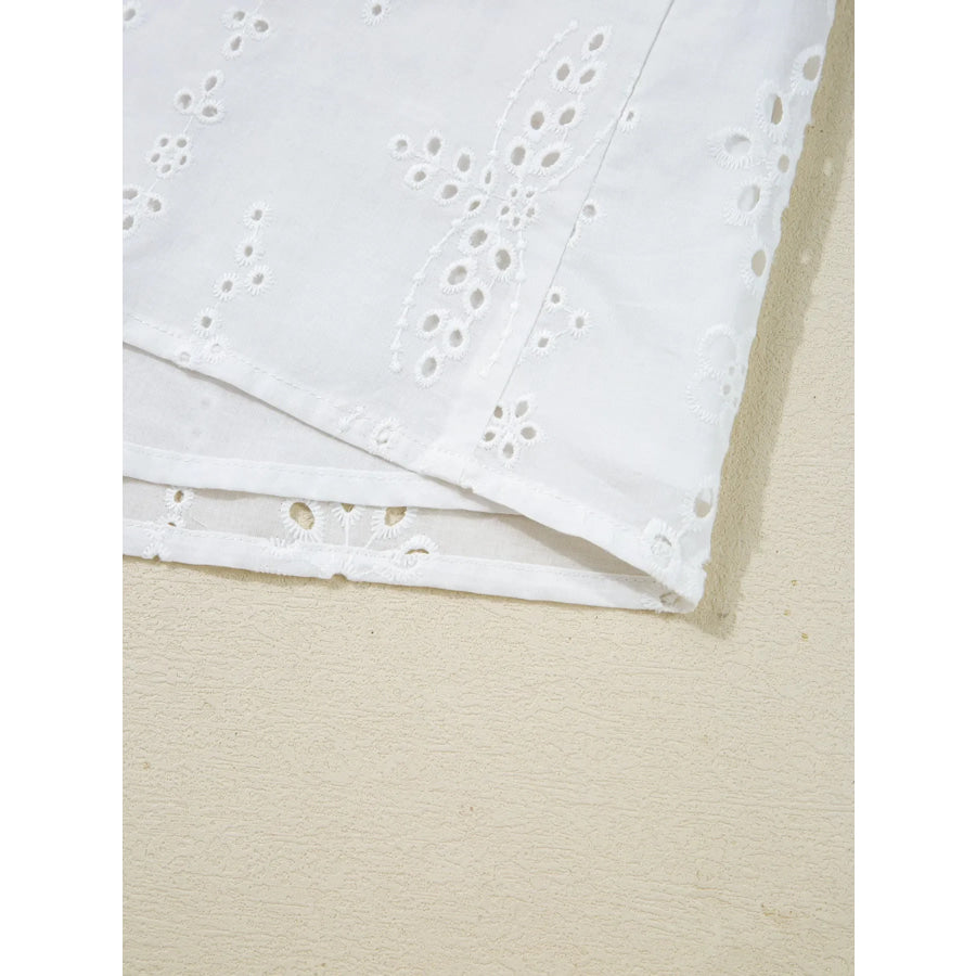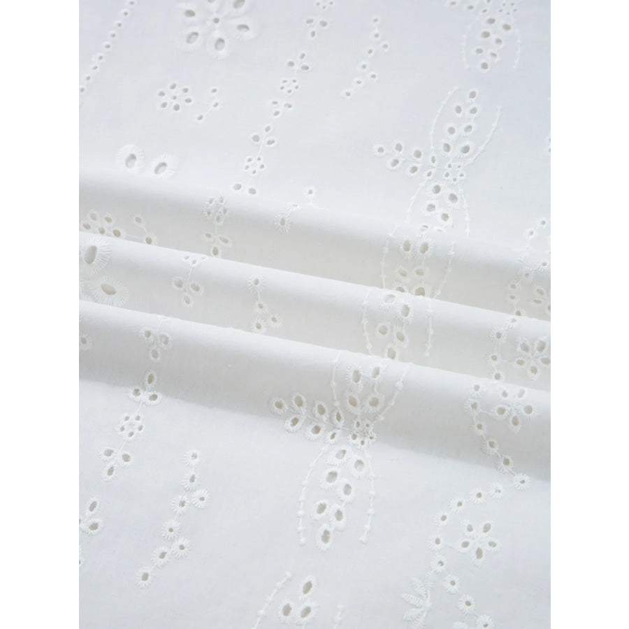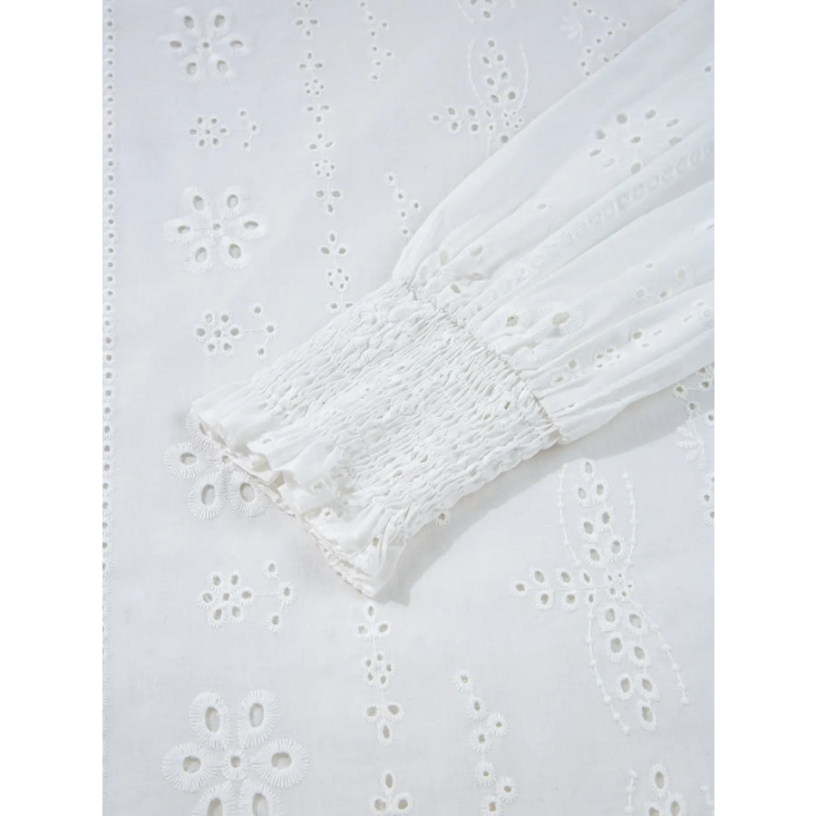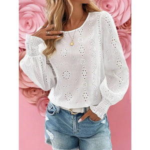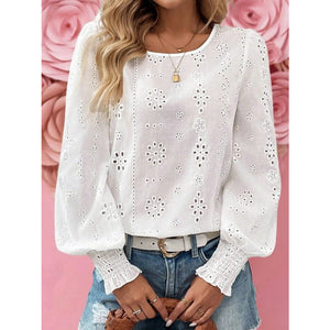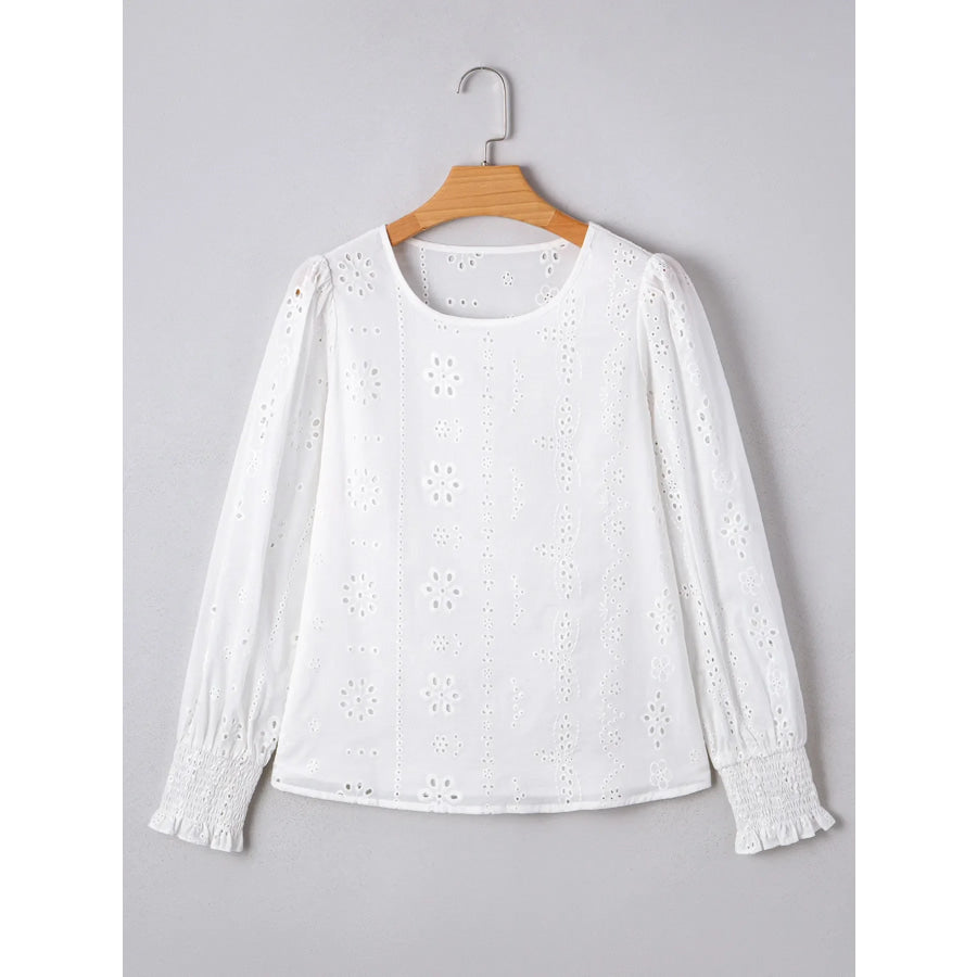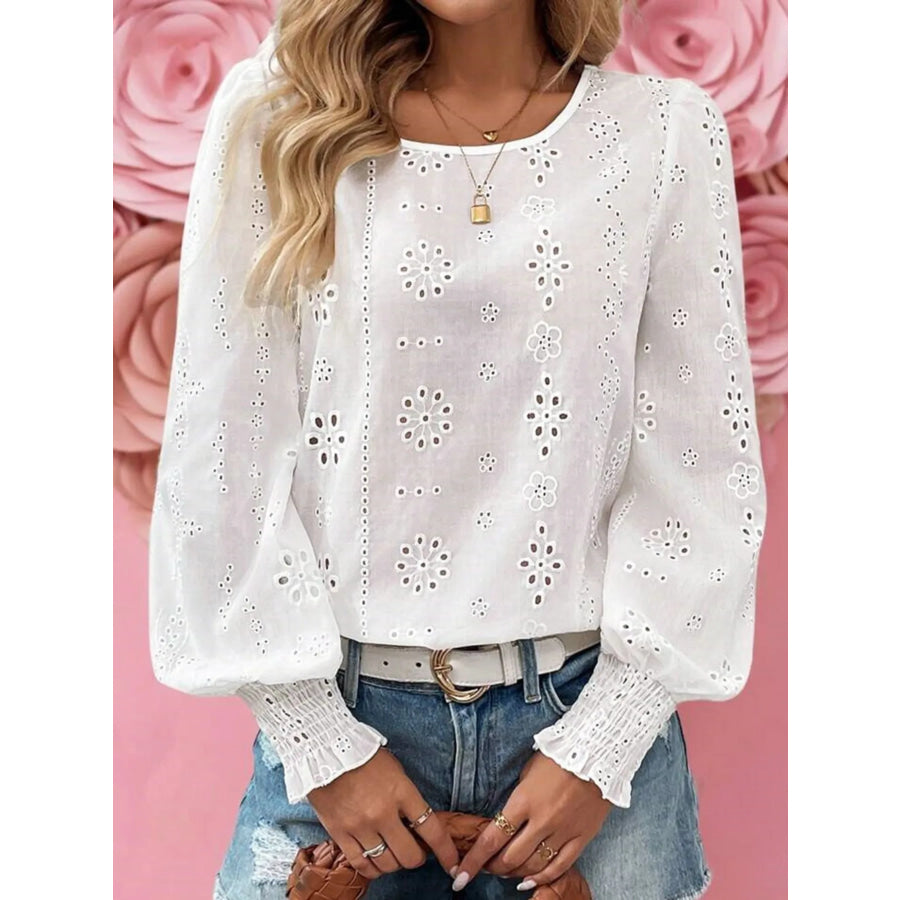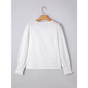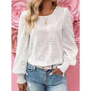 Eyelet Long Sleeve Blouse with Elastic Cuffs
