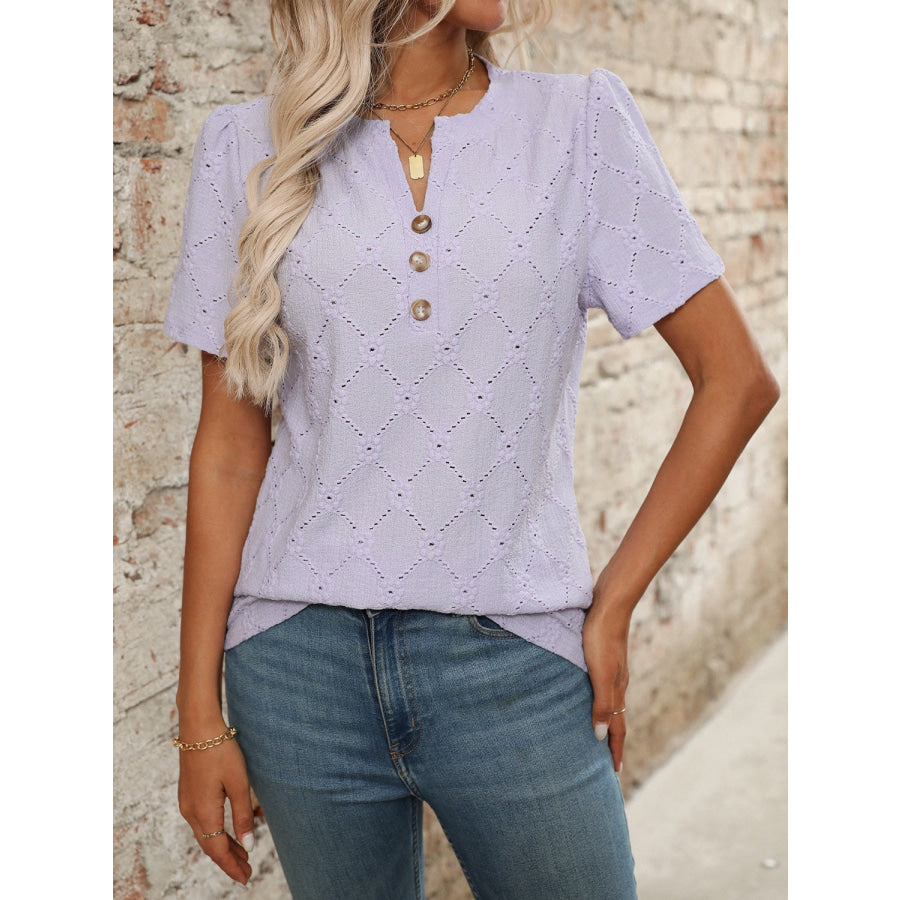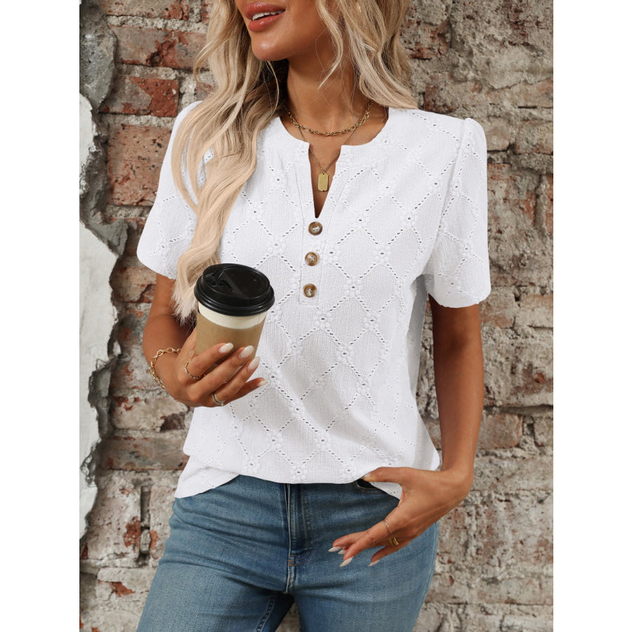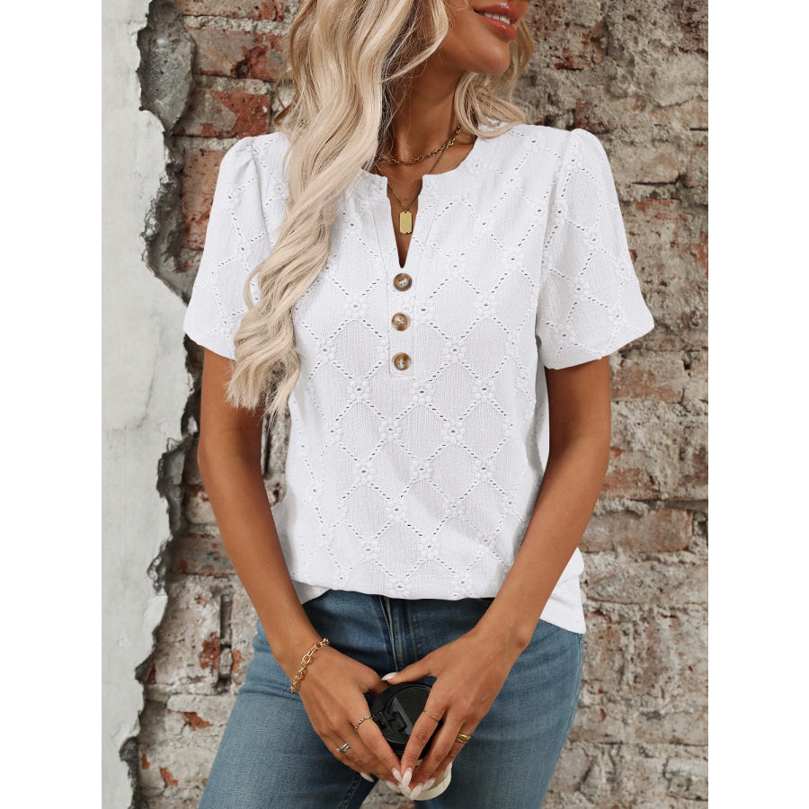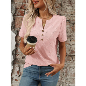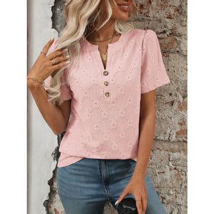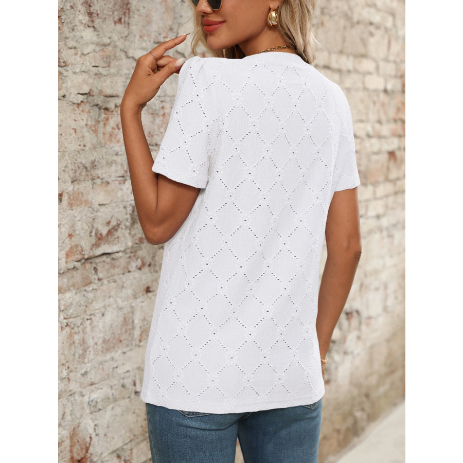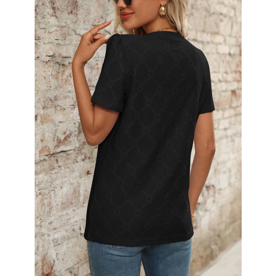 Eyelet Notched Short Sleeve Top