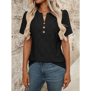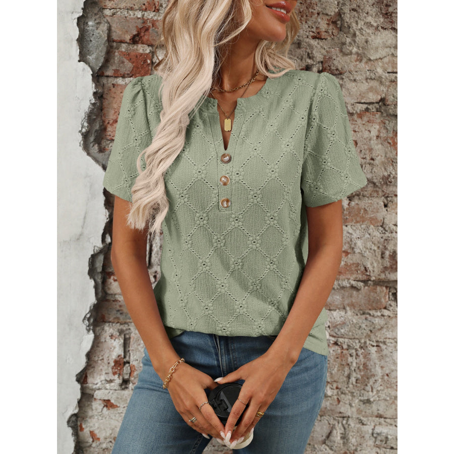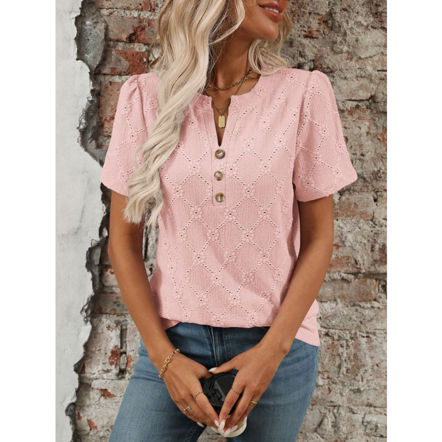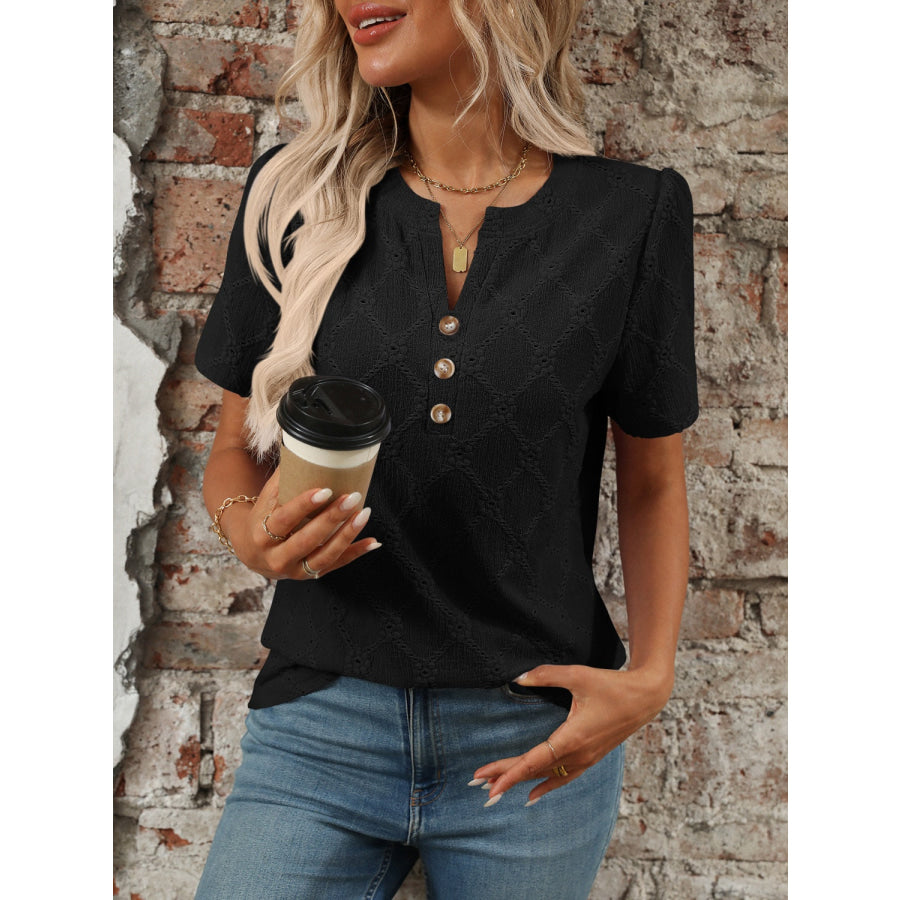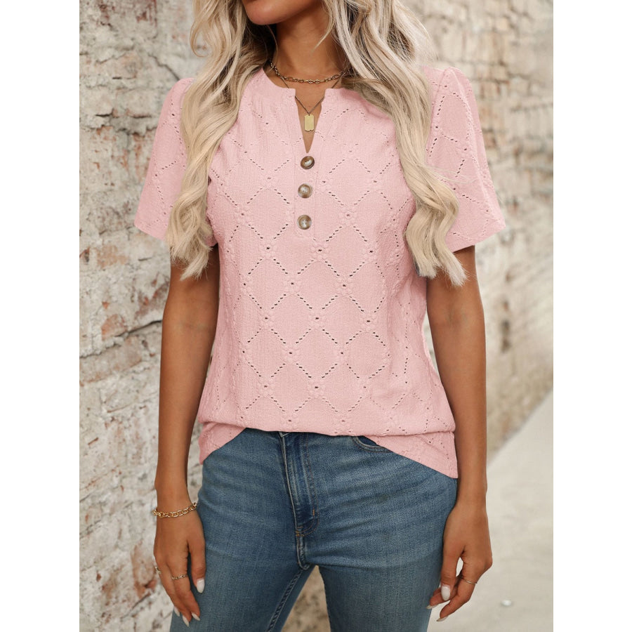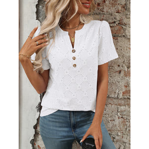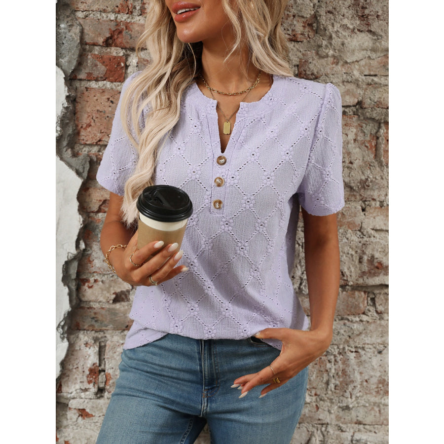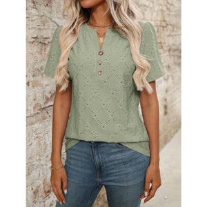 Eyelet Notched Short Sleeve Top