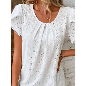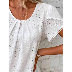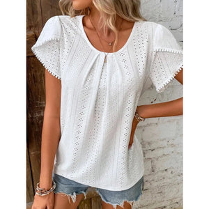 Eyelet Petal Sleeve Top with Pom Pom Trim
