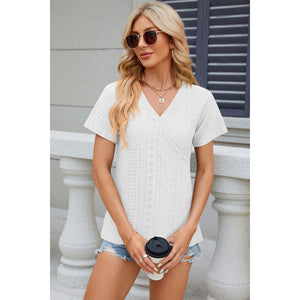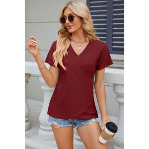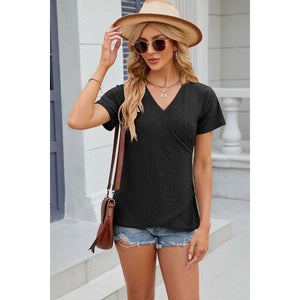 Eyelet Surplice Short Sleeve T-Shirt