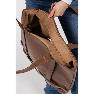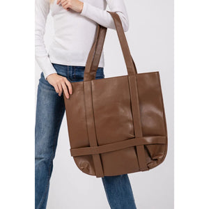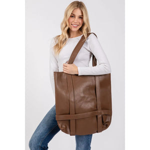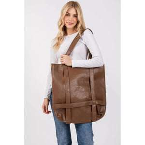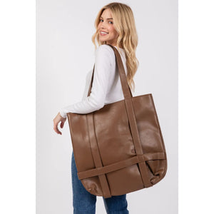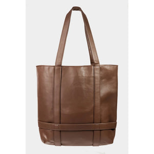 This premium oversized tote handbag features luxurious brown leather construction with a spacious interior perfect for daily essentials. The comfortable shoulder straps and elegant minimalist design make it ideal for both professional and casual settings. Crafted from high-quality leather materials, this versatile tote offers durability and timeless style. The rich brown color adds sophistication to any outfit, while the roomy design accommodates laptops, documents, and personal items with ease.