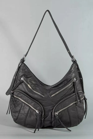 Fame Multi Zipper Pocket Leather Hobo Bag