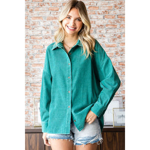 First Love Washed Corduroy Button Down Long Sleeve Shirt