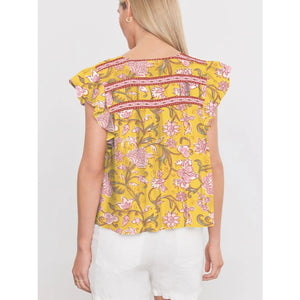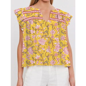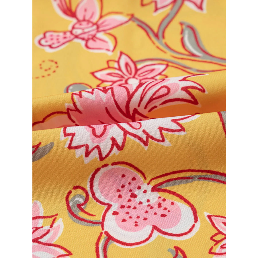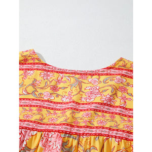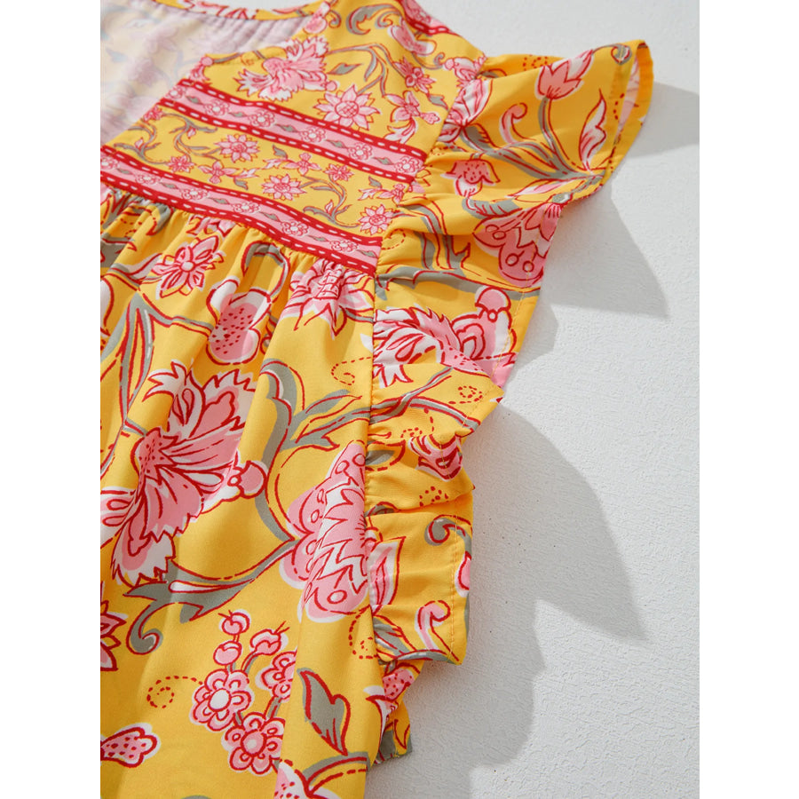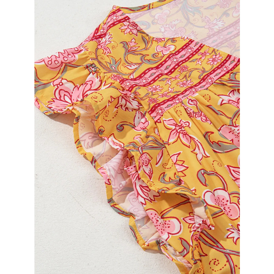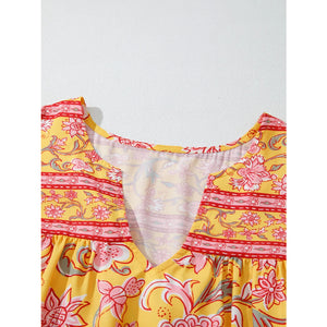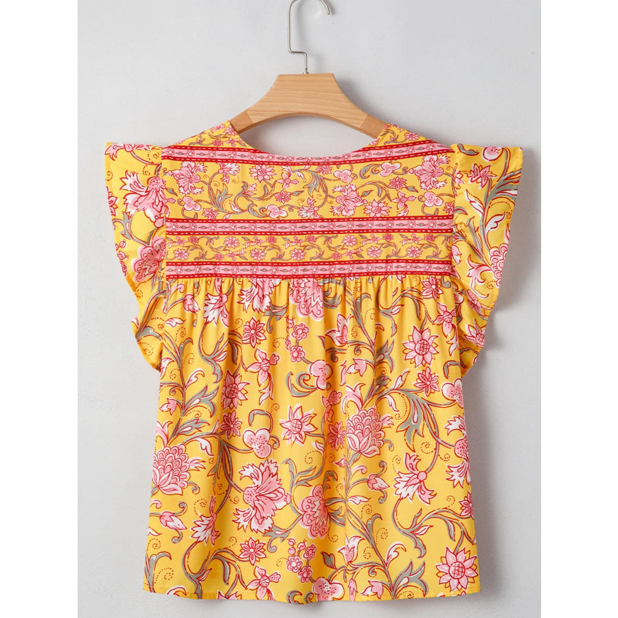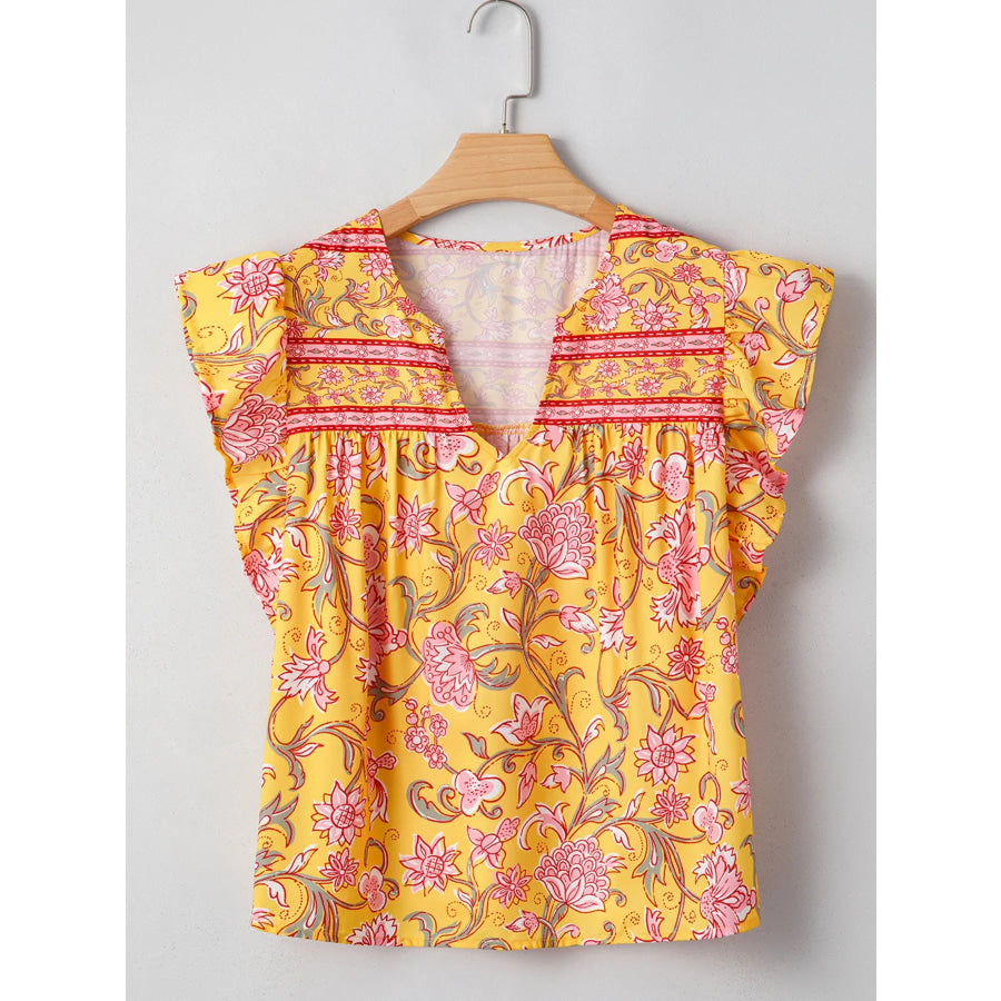 Floral Notched Neck Ruffled Sleeve Casual Blouse
