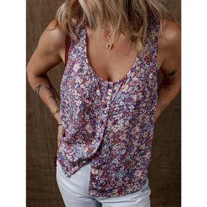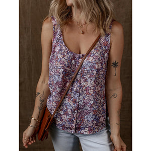 Floral Print Button Front Tank Top
