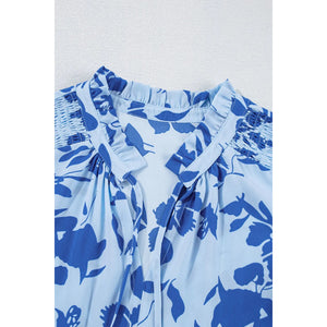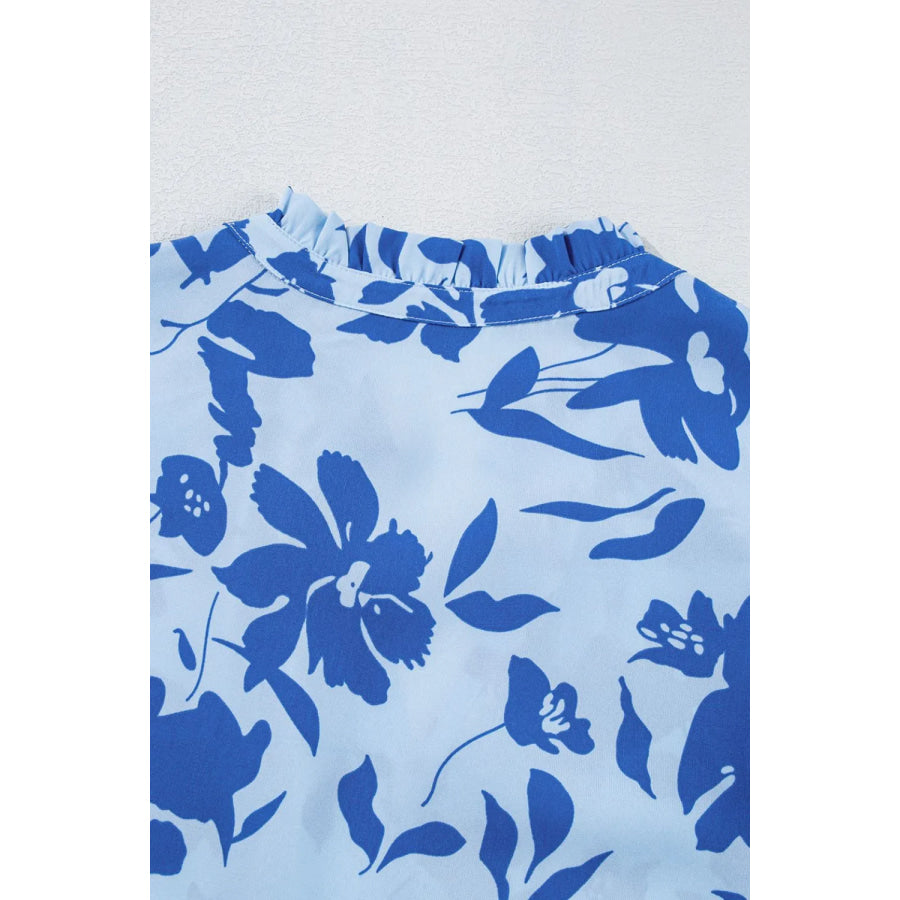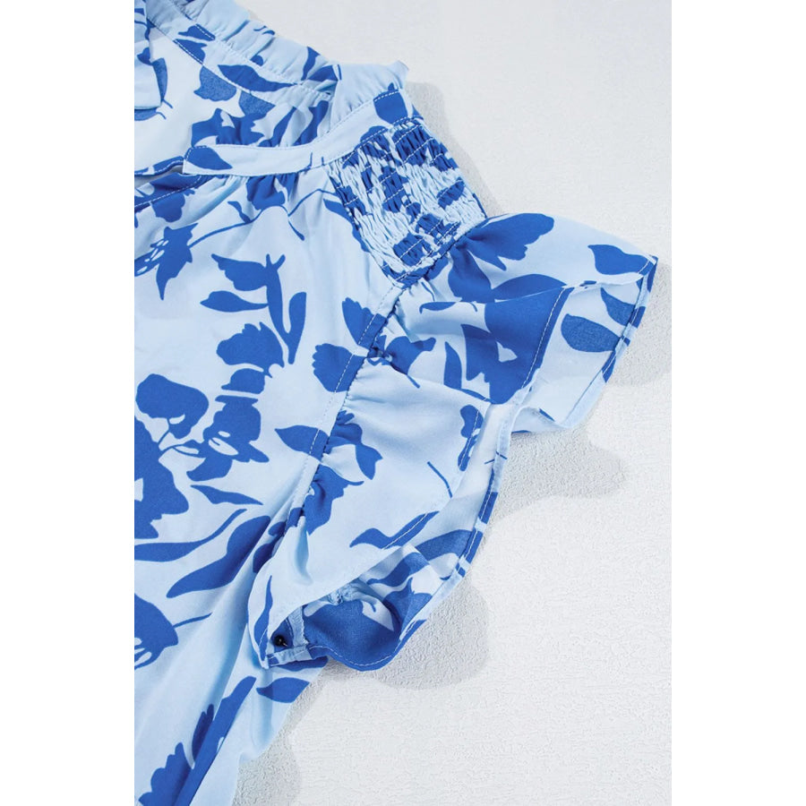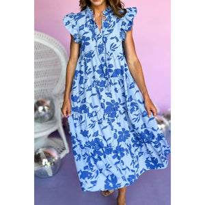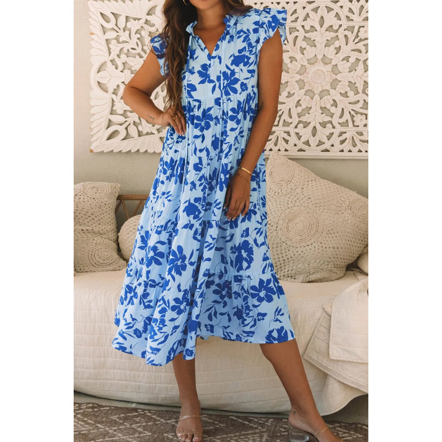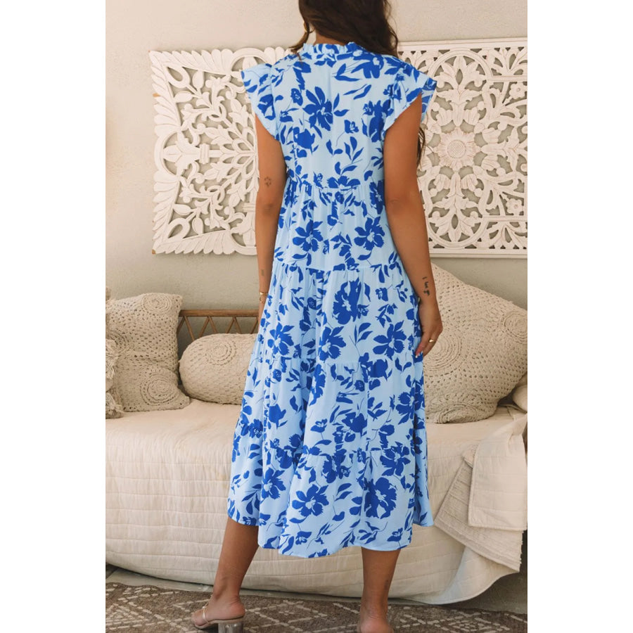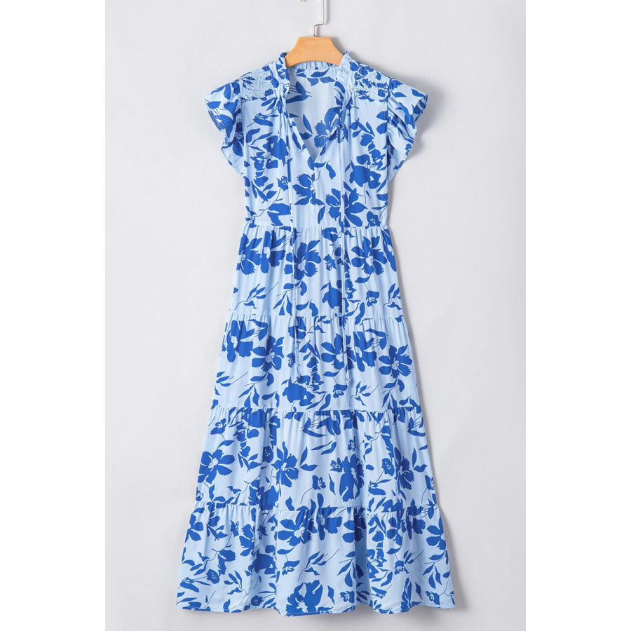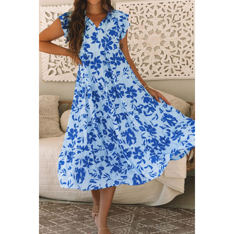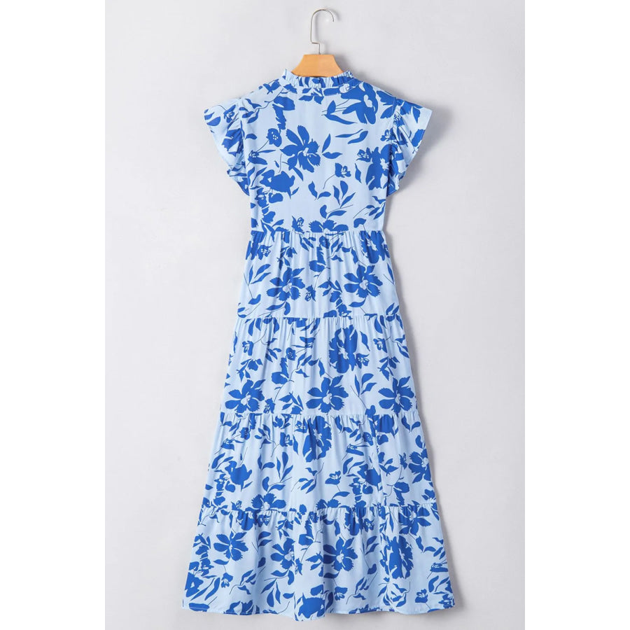 Floral Print Tiered Frilled Trim Flutter Sleeve Dress