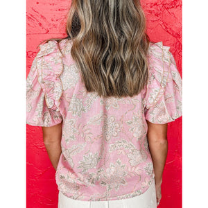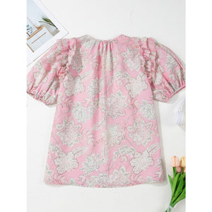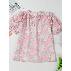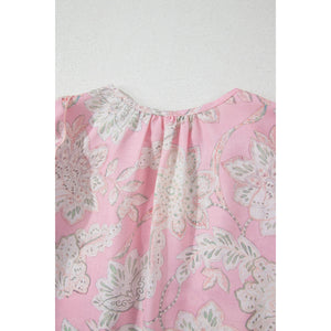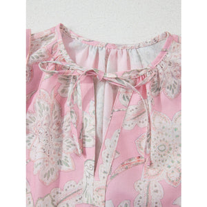 Floral Tie Neck Puff Sleeve Blouse