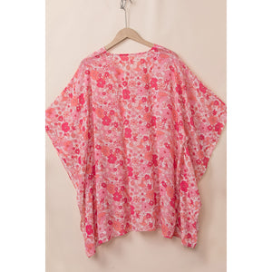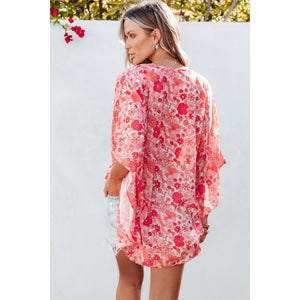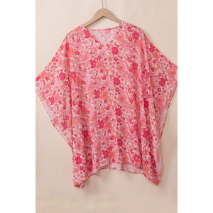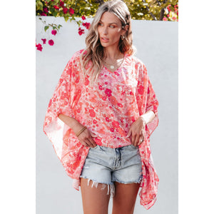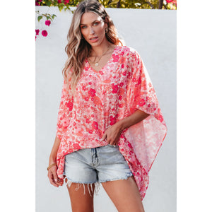 Floral V-Neck Three-Quarter Sleeve Blouse