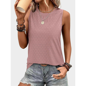 Florira Eyelet Round Neck Tank