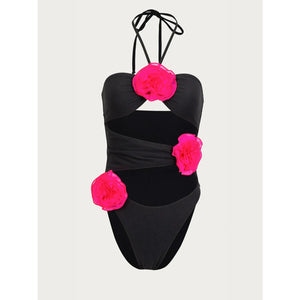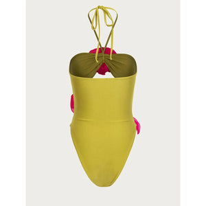 Flower Cutout Halter Neck One-Piece Swimwear