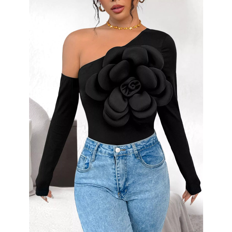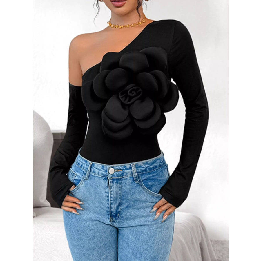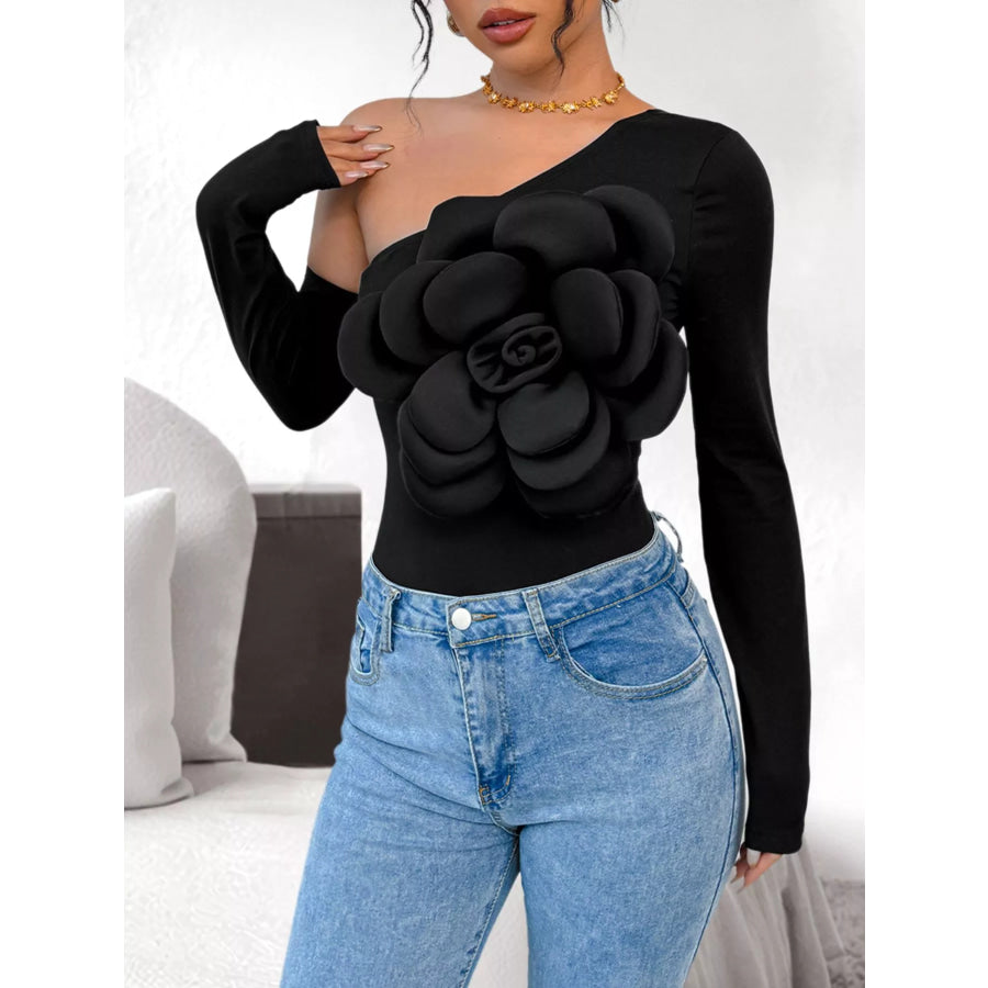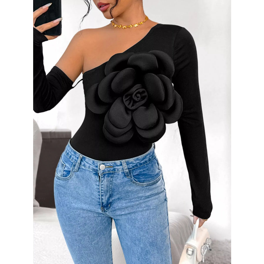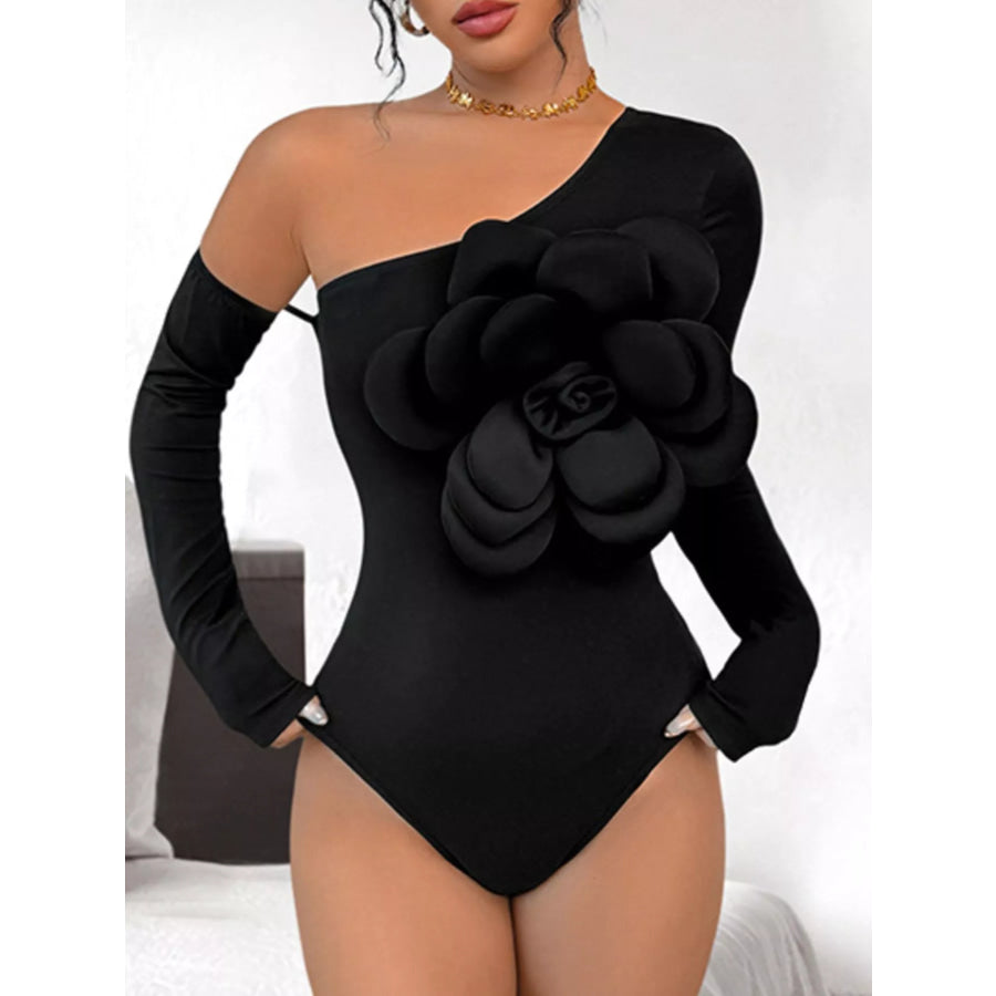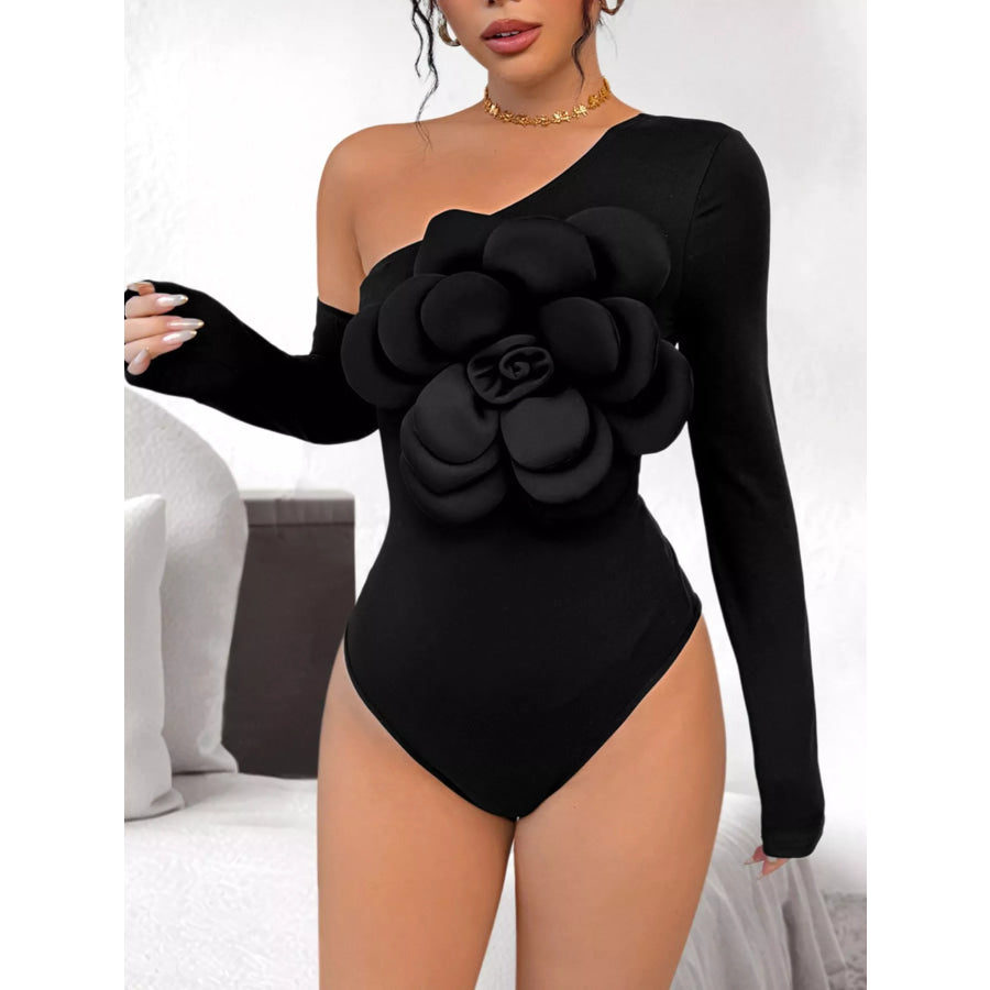 Flower Long Sleeve Single Shoulder Bodysuit