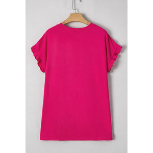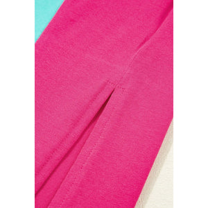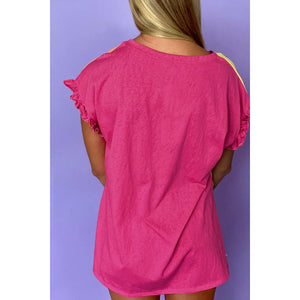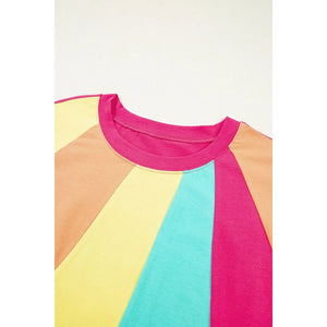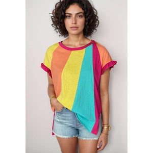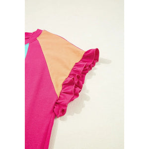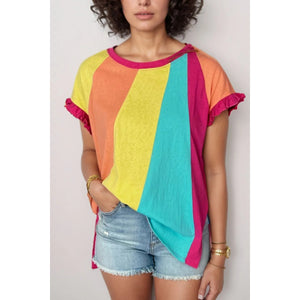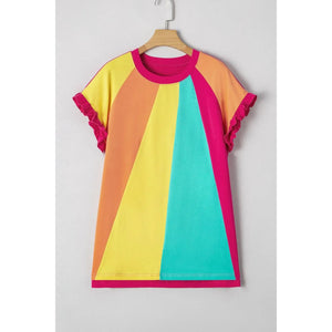 Frill Color Block Crew Neck Loose Fit T Shirt