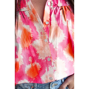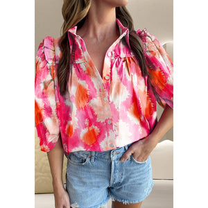 Frill Contrast Print Collared Neck Half Sleeve Shirt