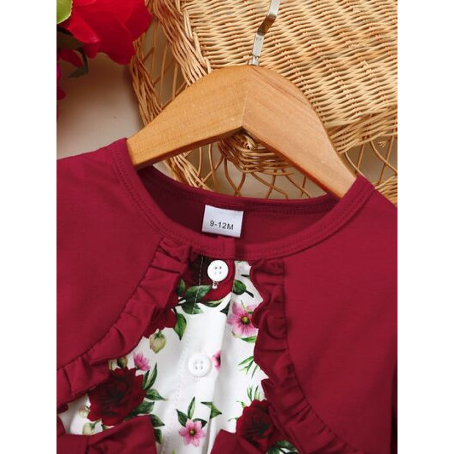 Frill Floral Round Neck Flounce Sleeve Dress