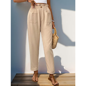 Frill High Waist Pants with Pockets