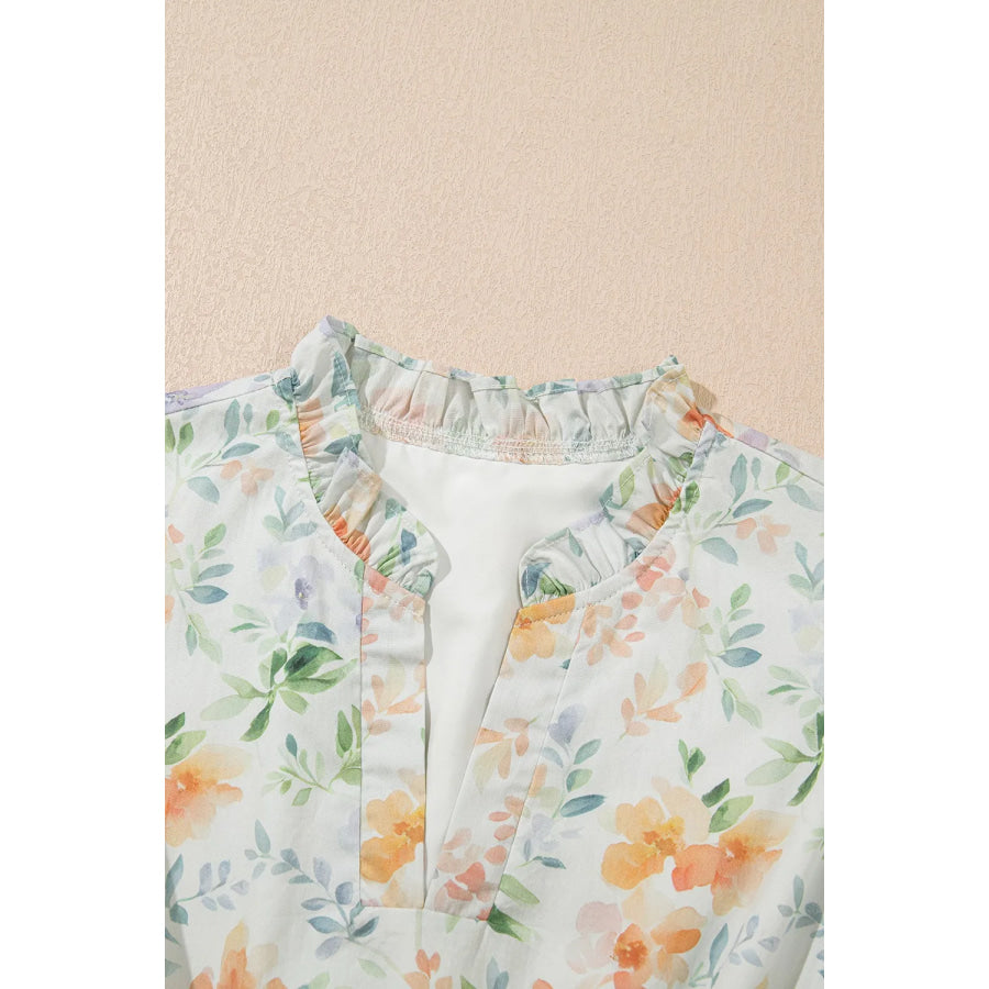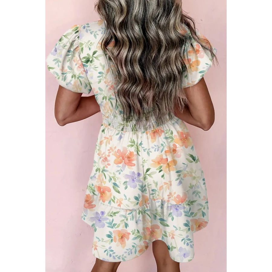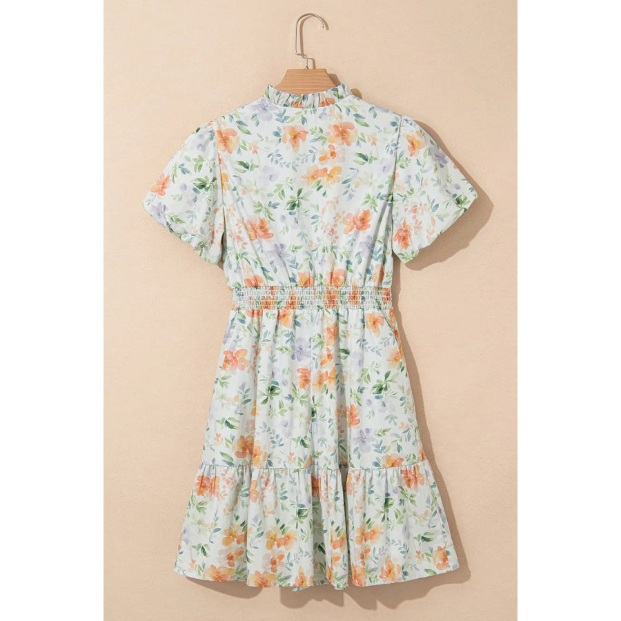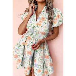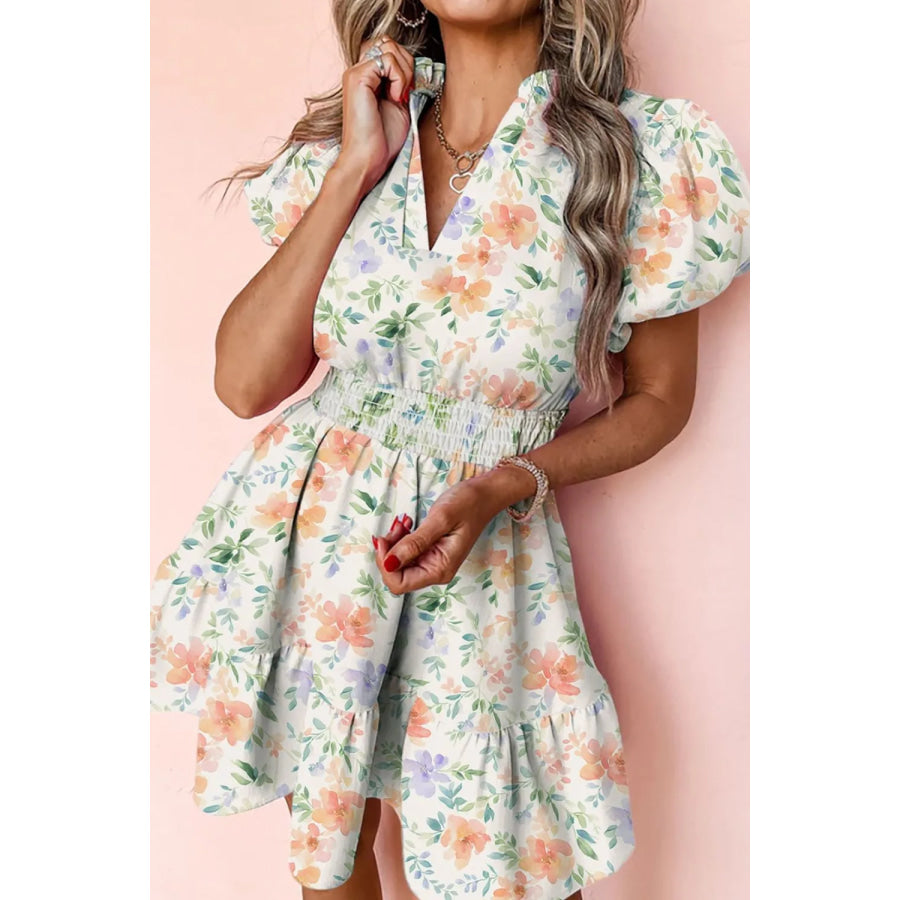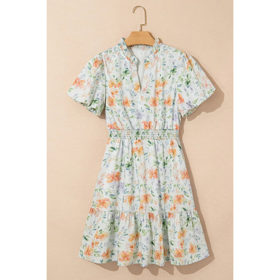 Frill Notched Puff Sleeve Dress