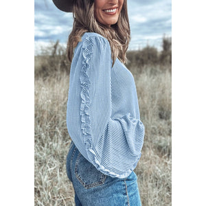 Frill Texture Round Neck Long Sleeve Sweatshirt