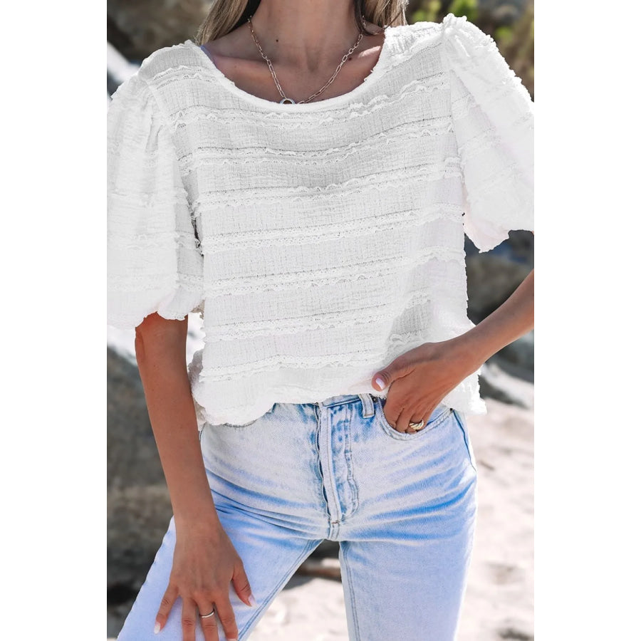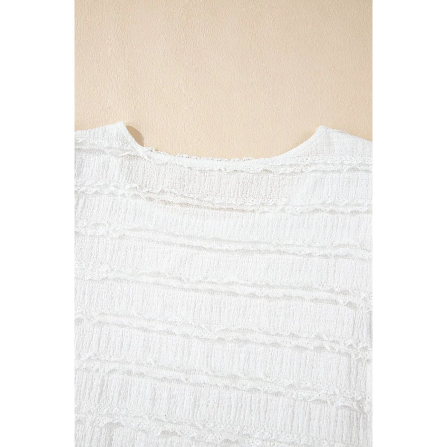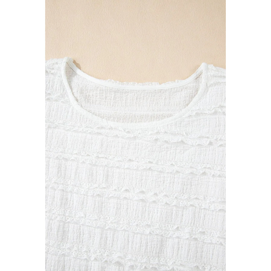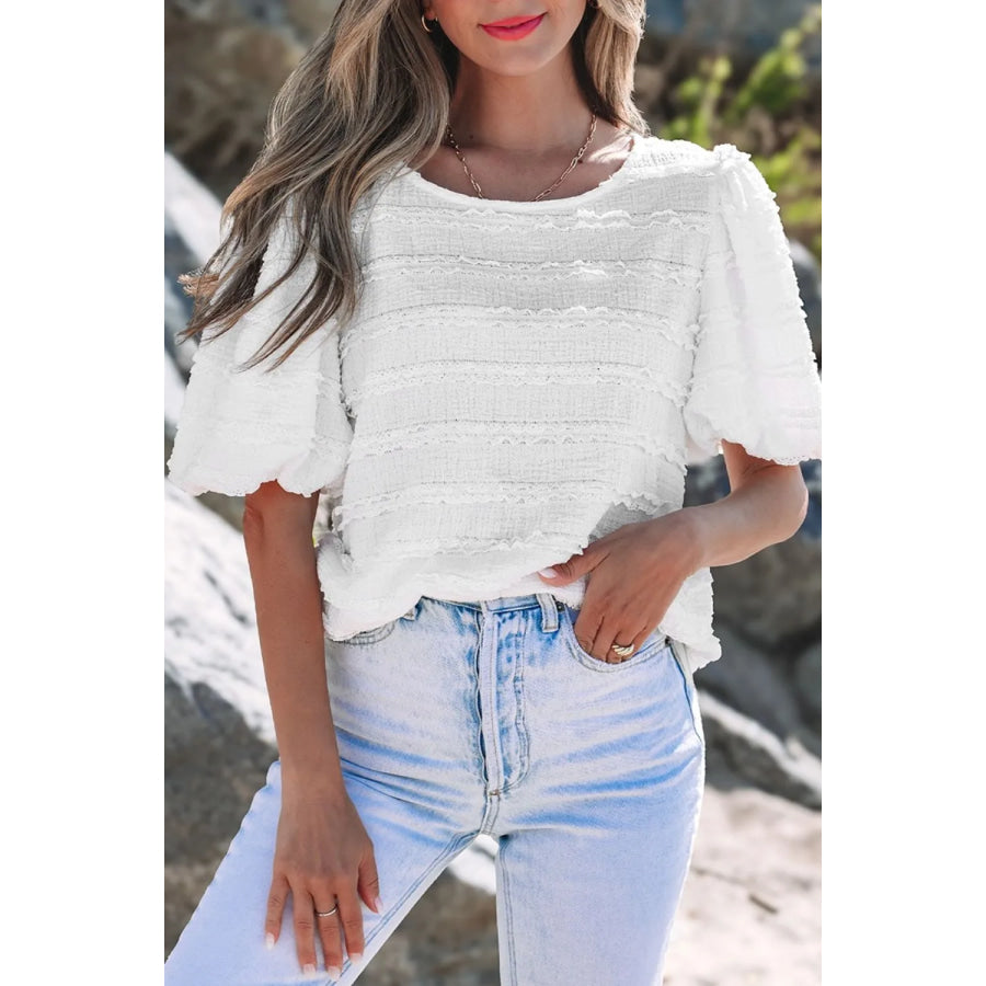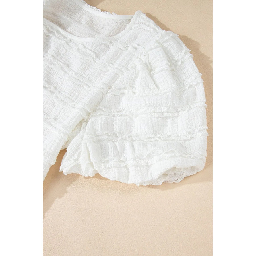 Frilled Lace Trim Bubble Sleeve Blouse
