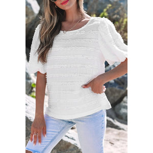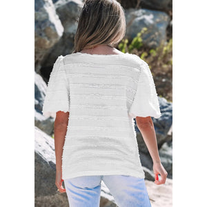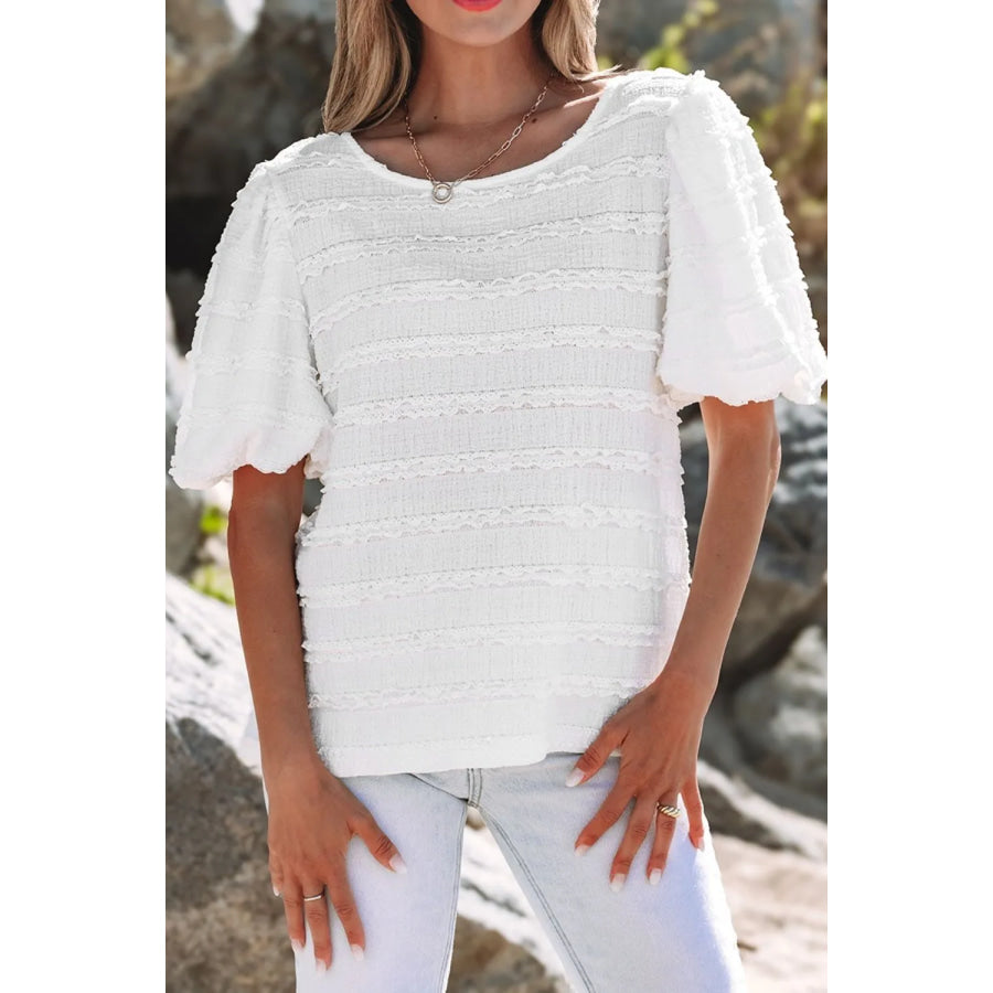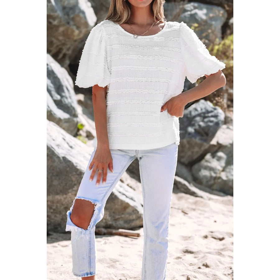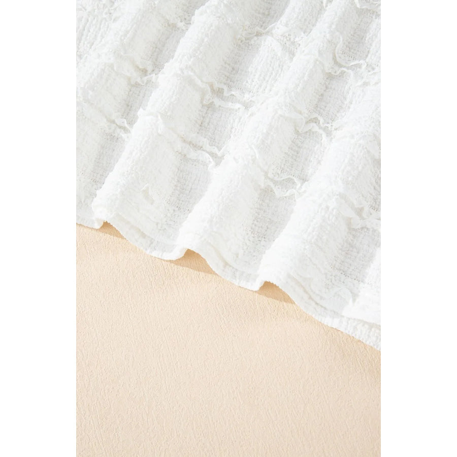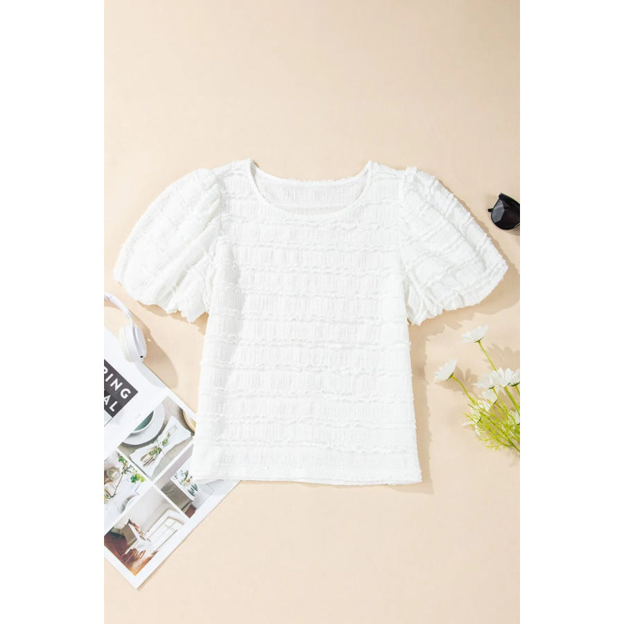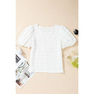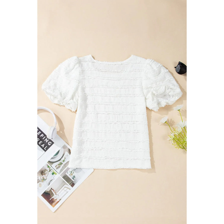 Frilled Lace Trim Bubble Sleeve Blouse