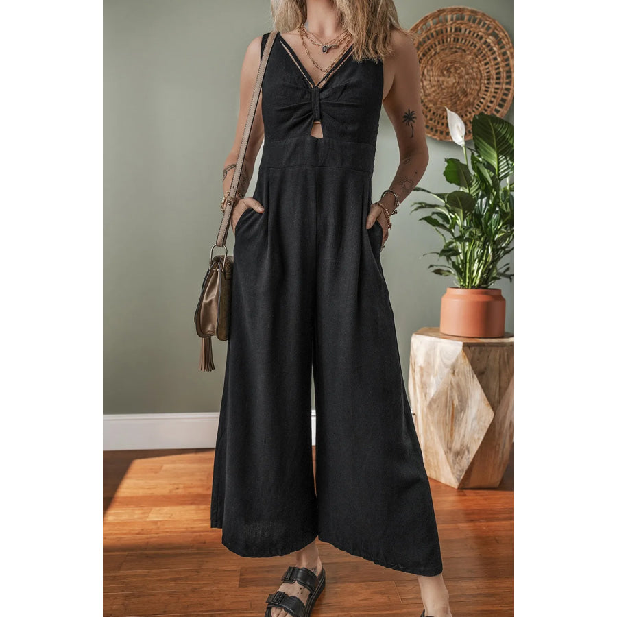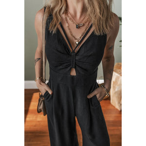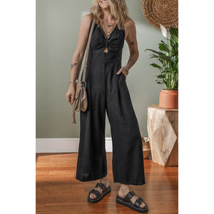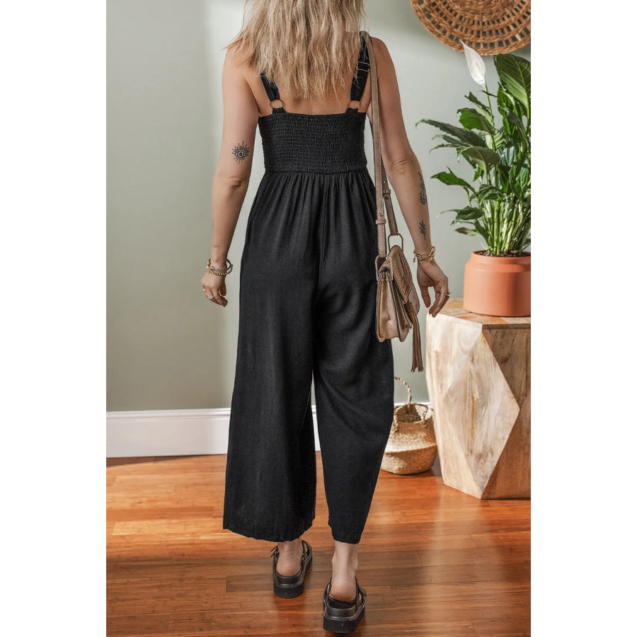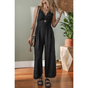 Front Cut Out Smocked Back Sleeveless Wide Leg Jumpsuit