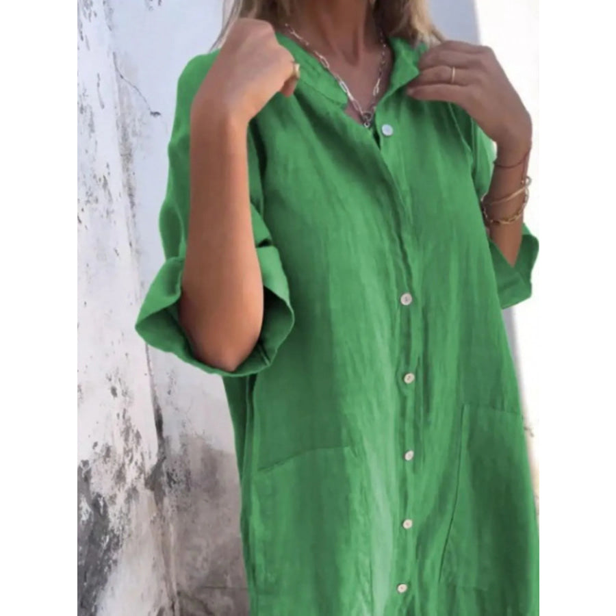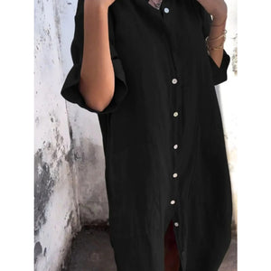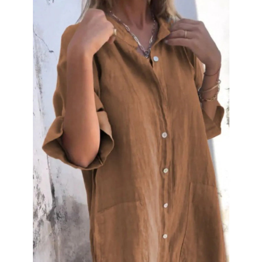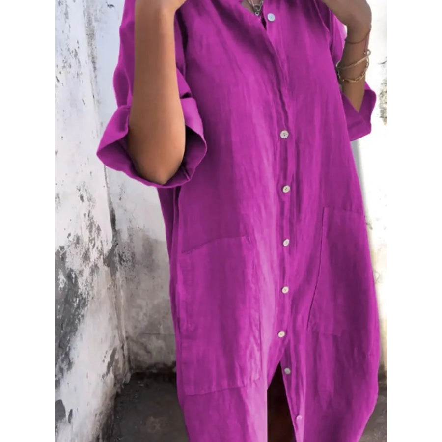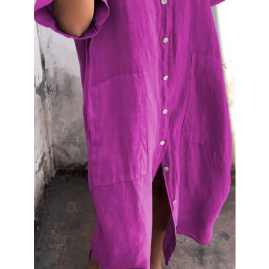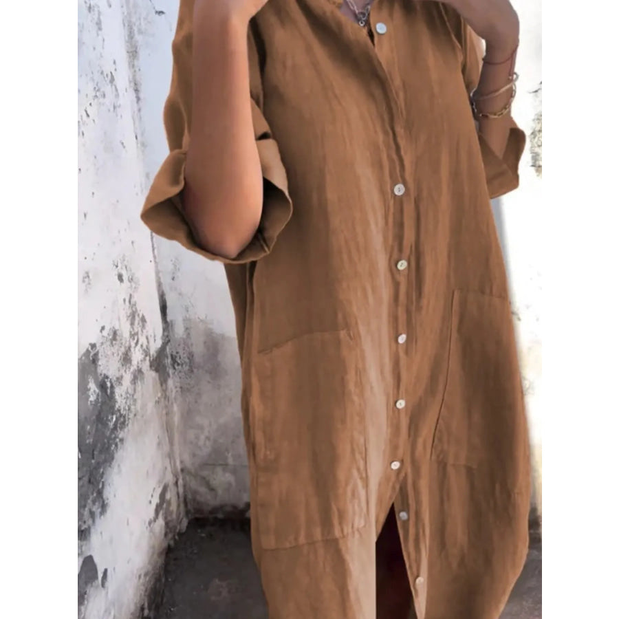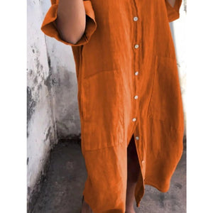 Full Size Casual Linen Button-Down Shirt Dress Plus Size