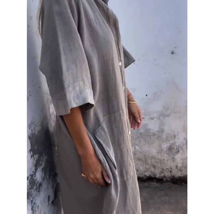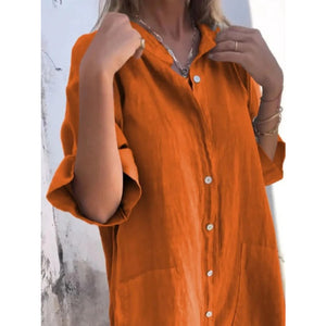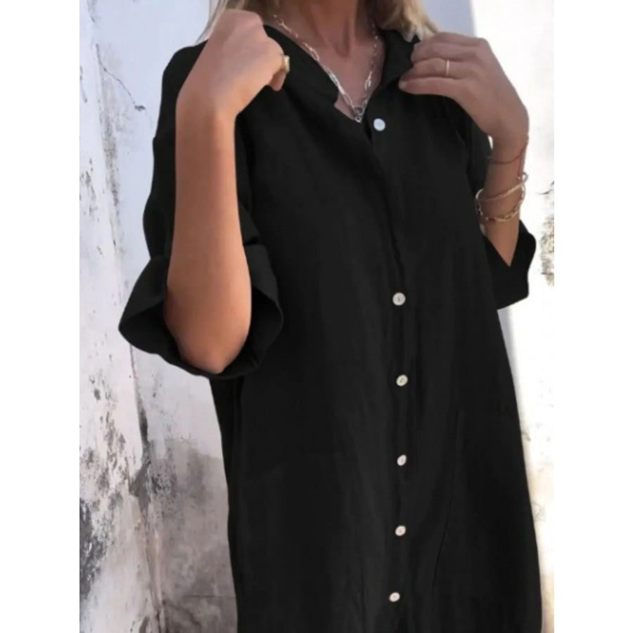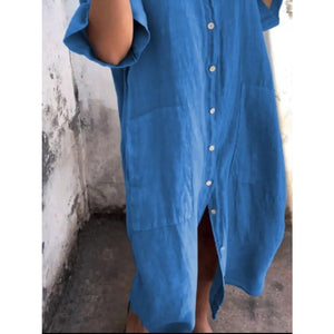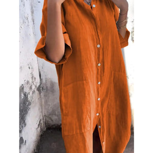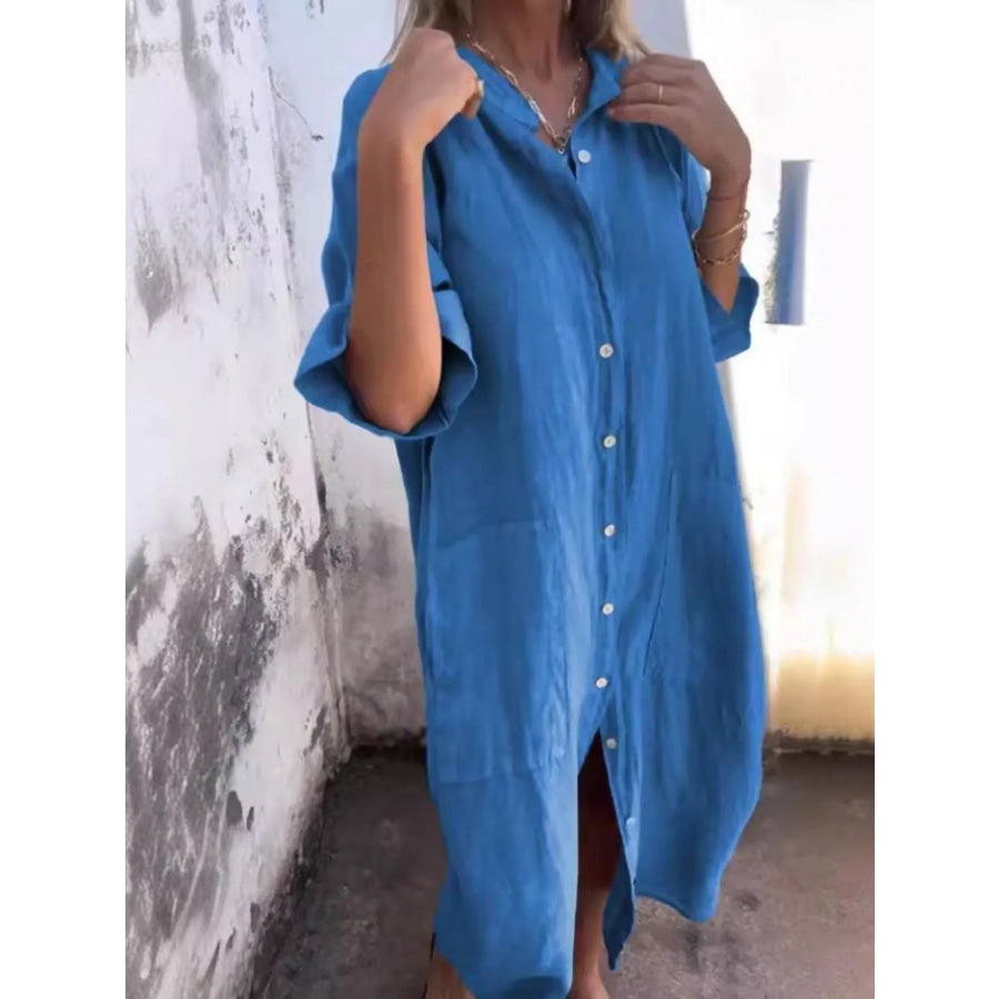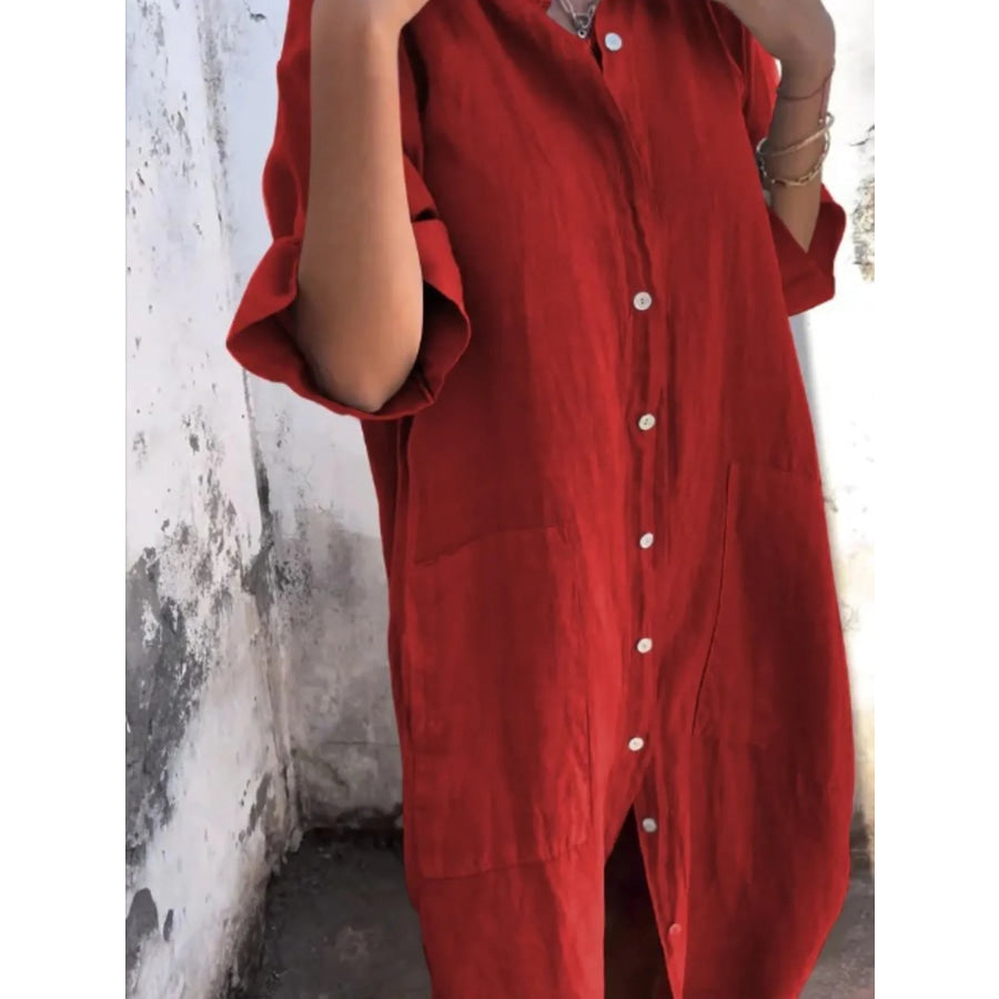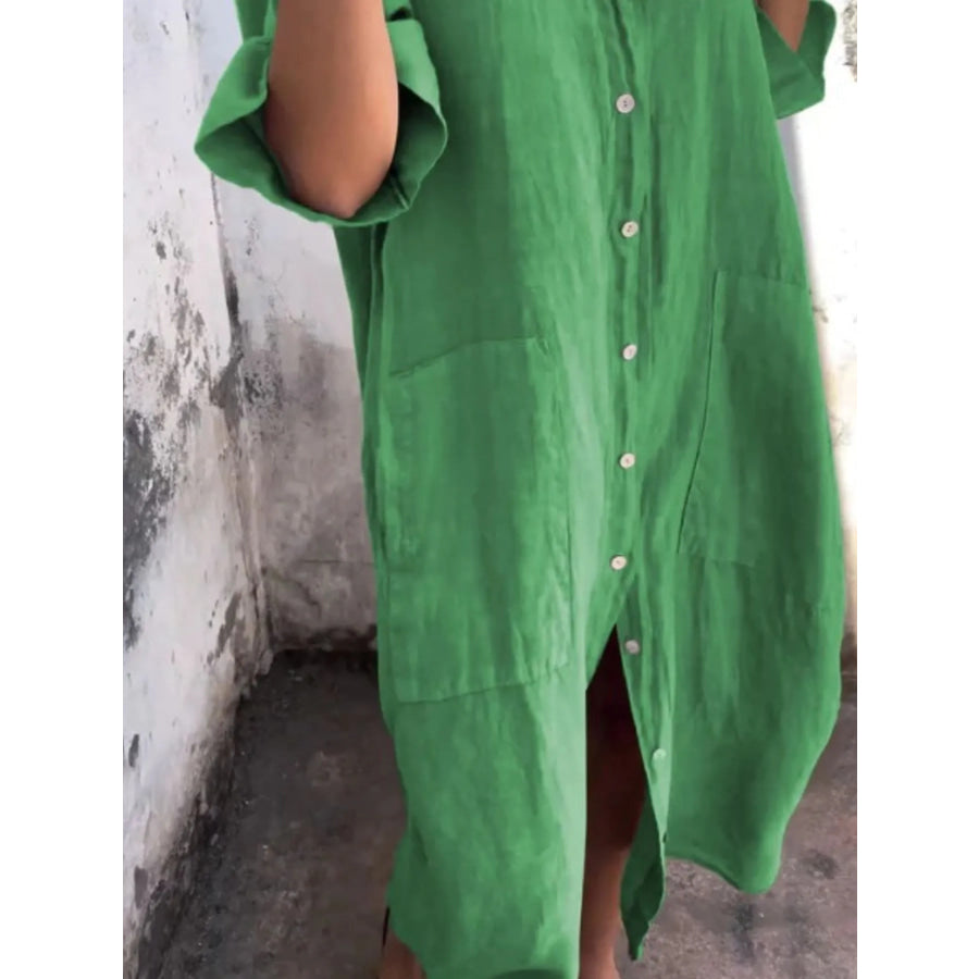 Full Size Casual Linen Button-Down Shirt Dress Plus Size