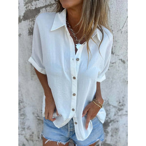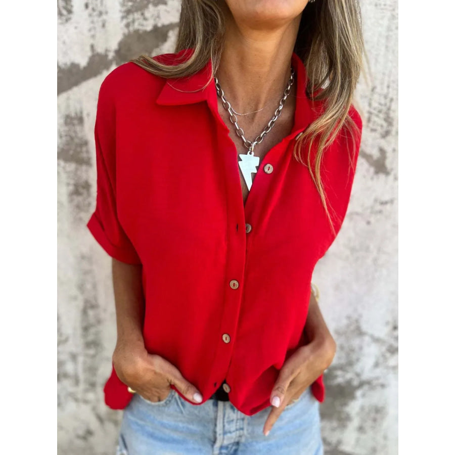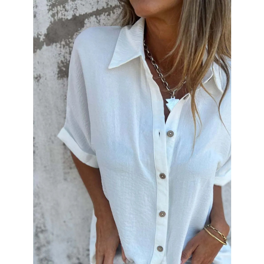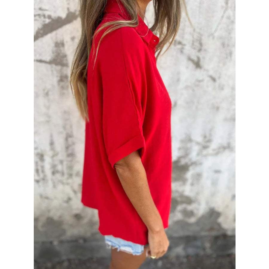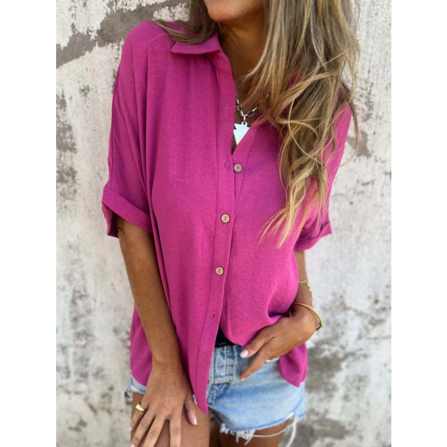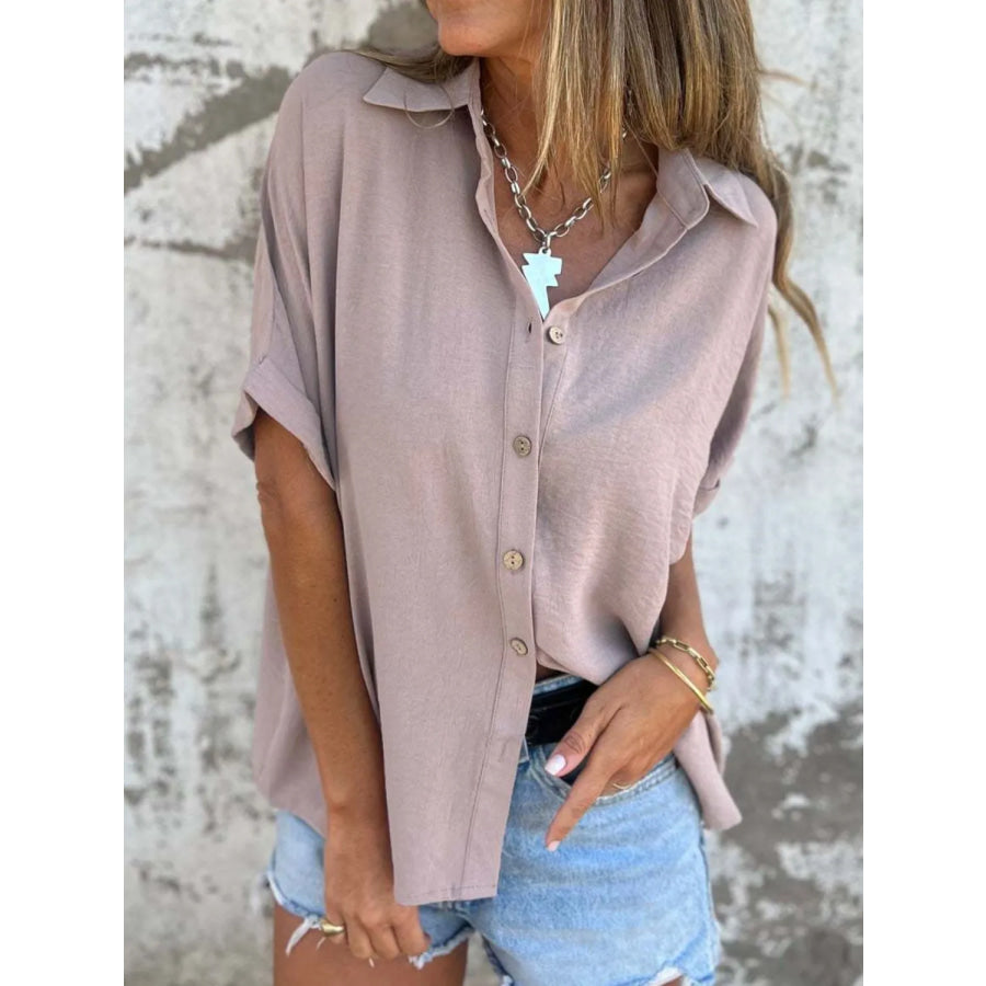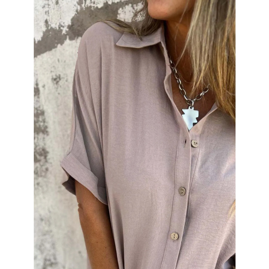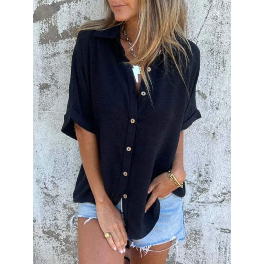 Full Size Collared Neck Half Sleeve Shirt Plus Size