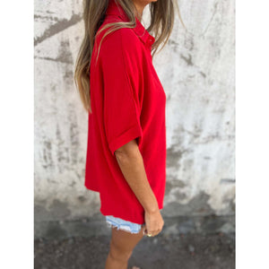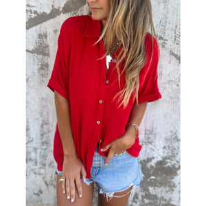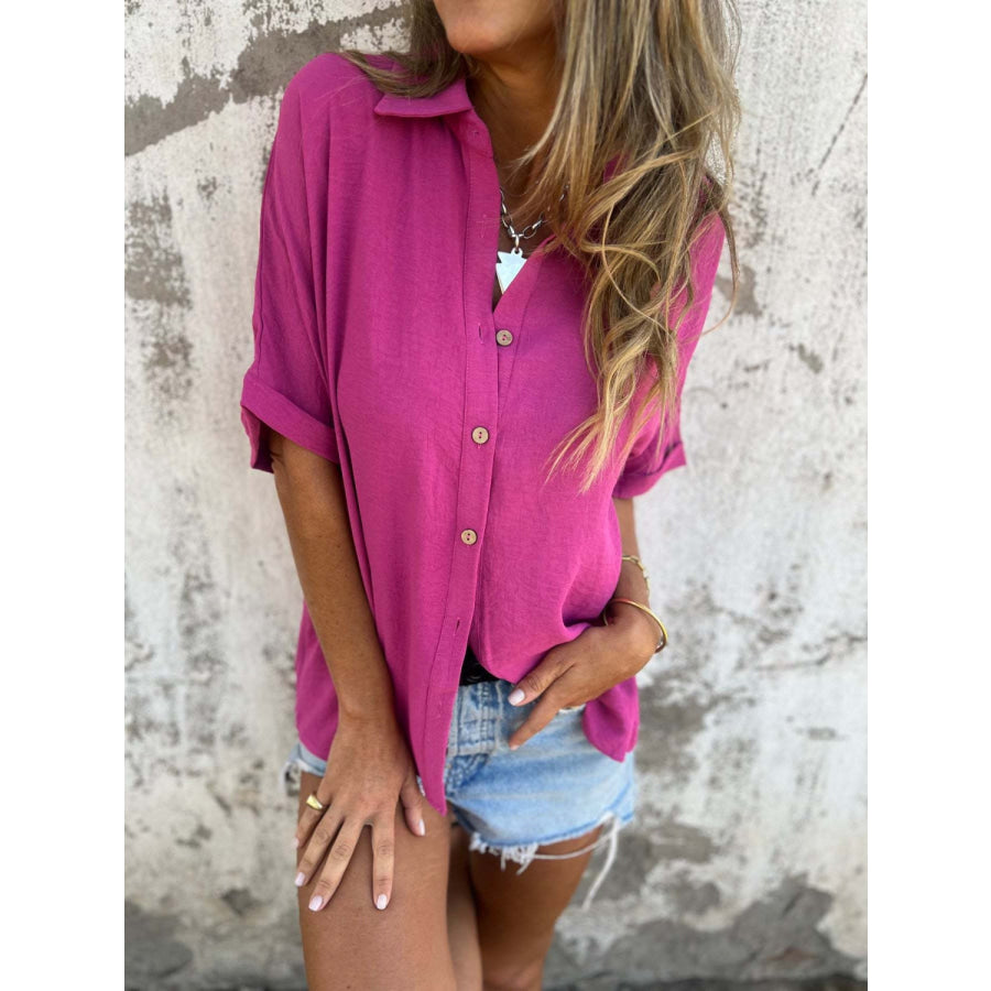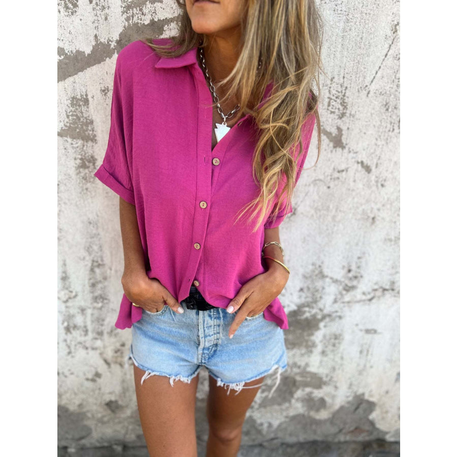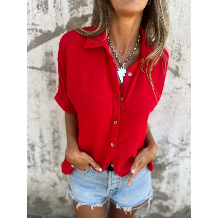 Full Size Collared Neck Half Sleeve Shirt Plus Size