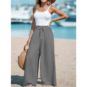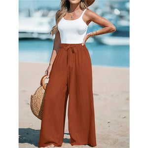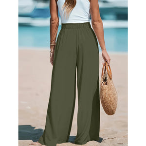 Full Size Drawstring Waist Wide Leg Pants Plus Size