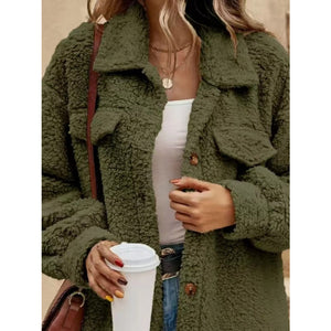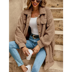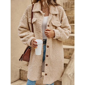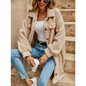 Full Size Fuzzy Fleece Longline Coat Plus Size
