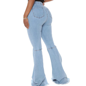 Full Size High-Waisted Raw Hem Flare Jeans Plus Size