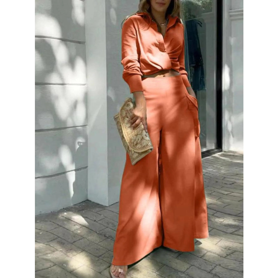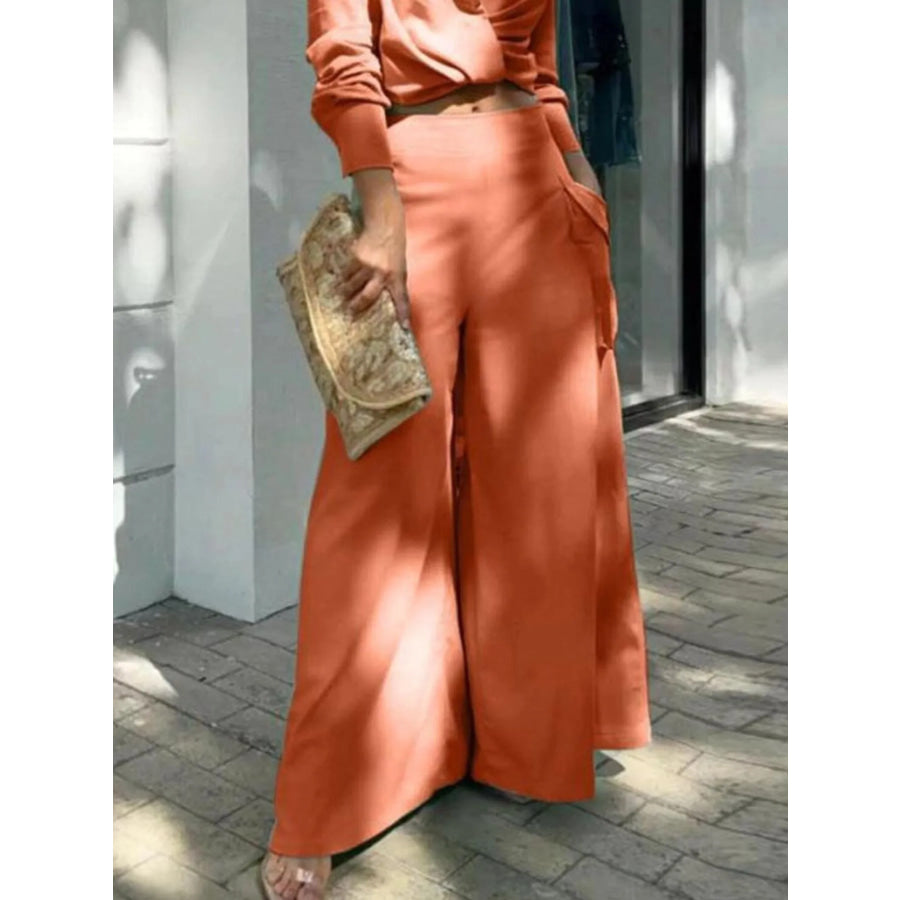 Full Size Long Sleeve Top and Pants Set Plus Size