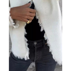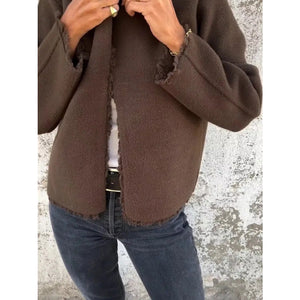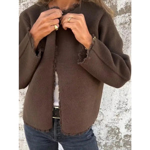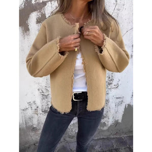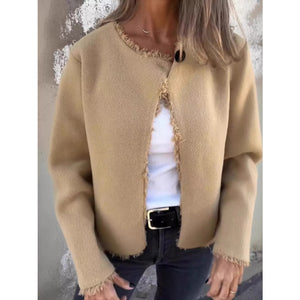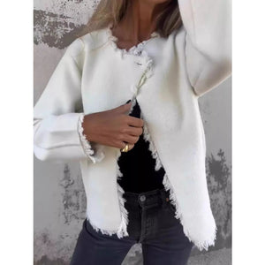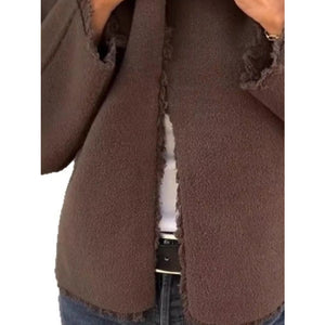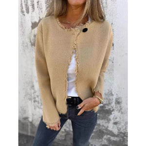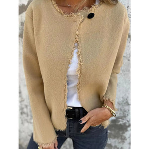 Full Size One Button Frayed Edge Cardigan Plus Size