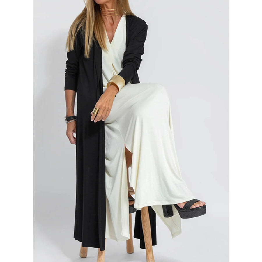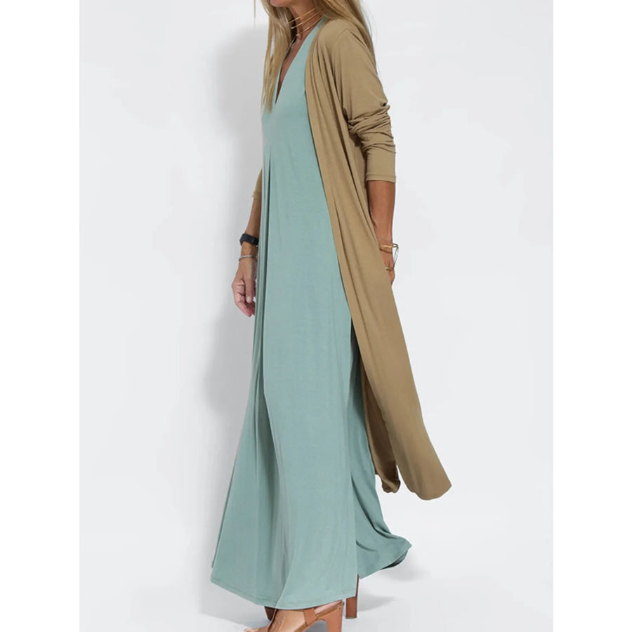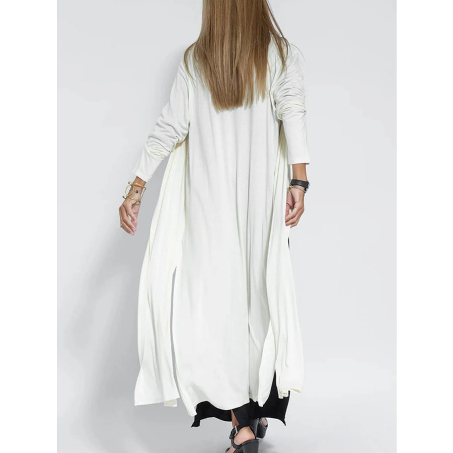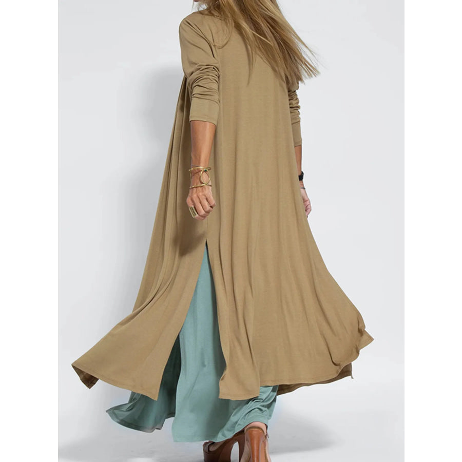 Full Size Open Front Side Slit Longline Cardigan Plus Size