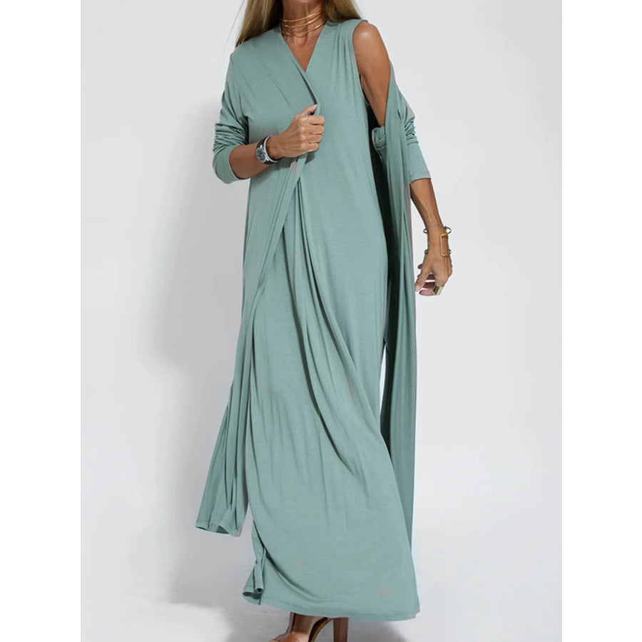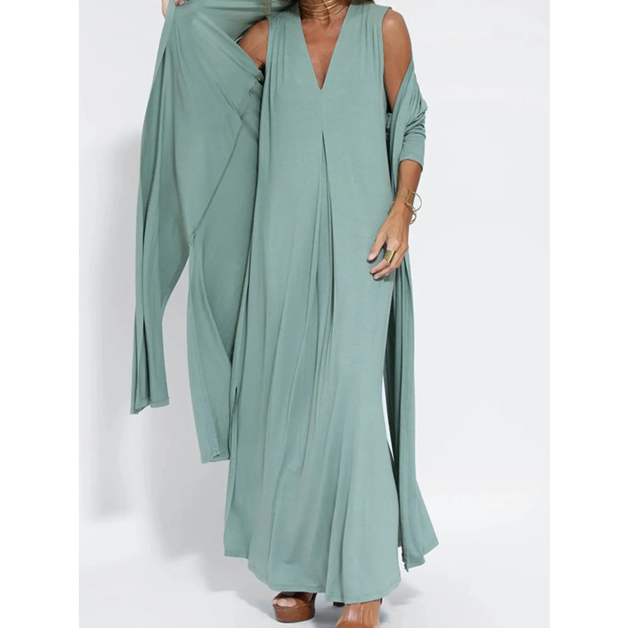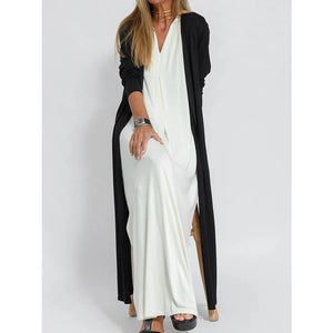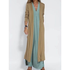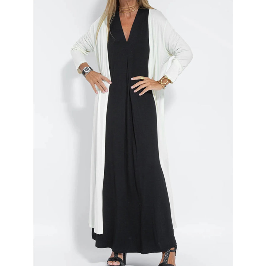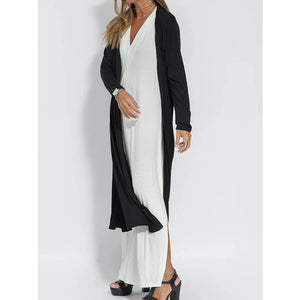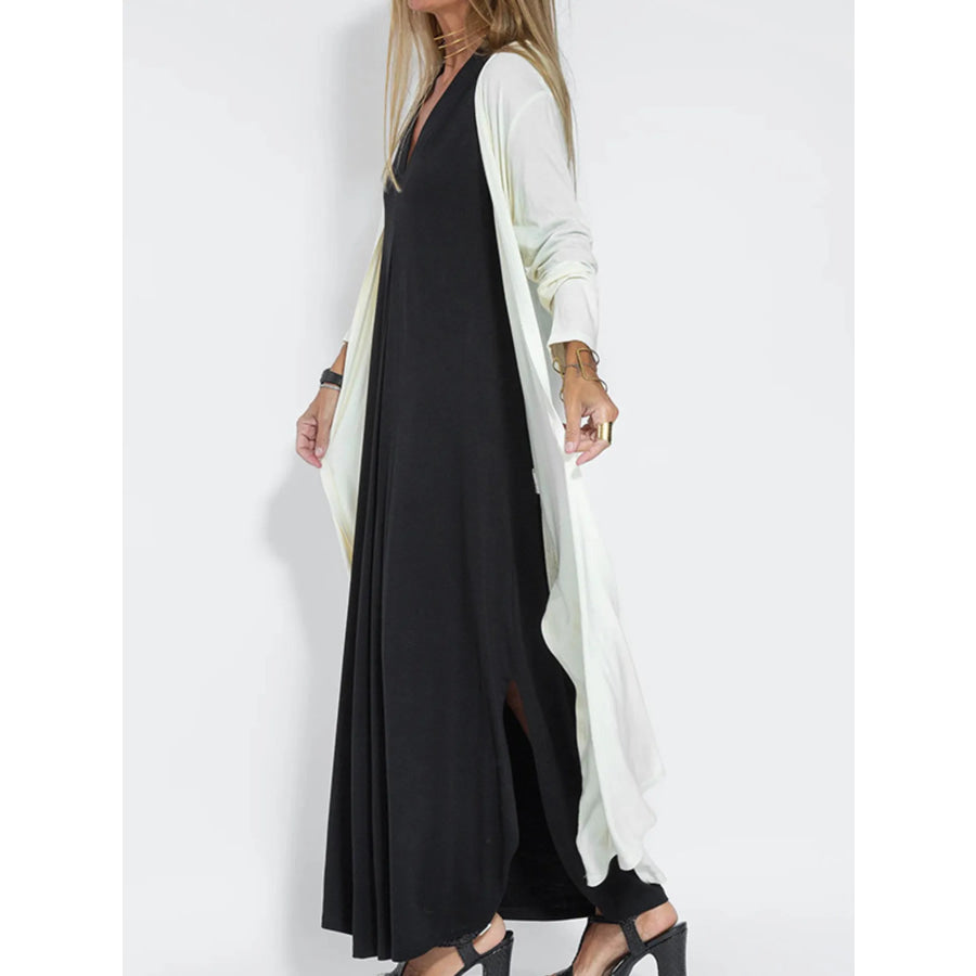 Full Size Open Front Side Slit Longline Cardigan Plus Size