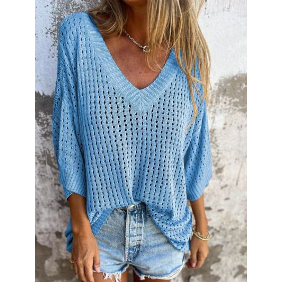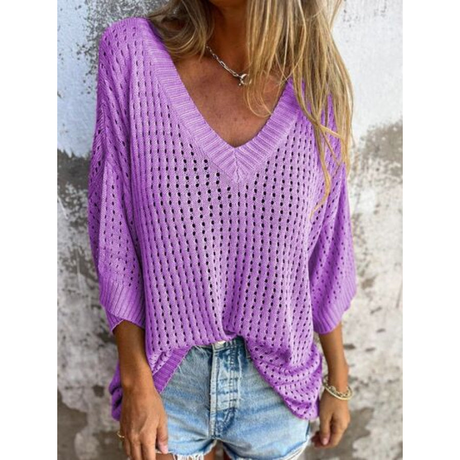 Full Size Openwork V-Neck Knit Cover Up Plus Size