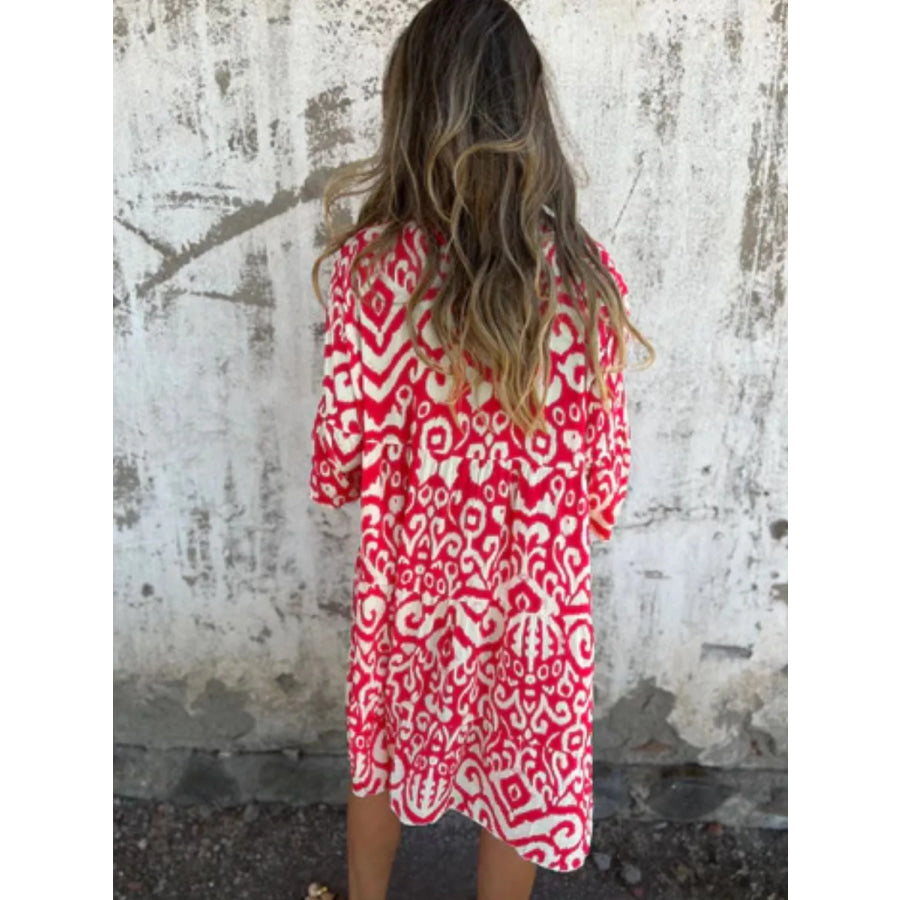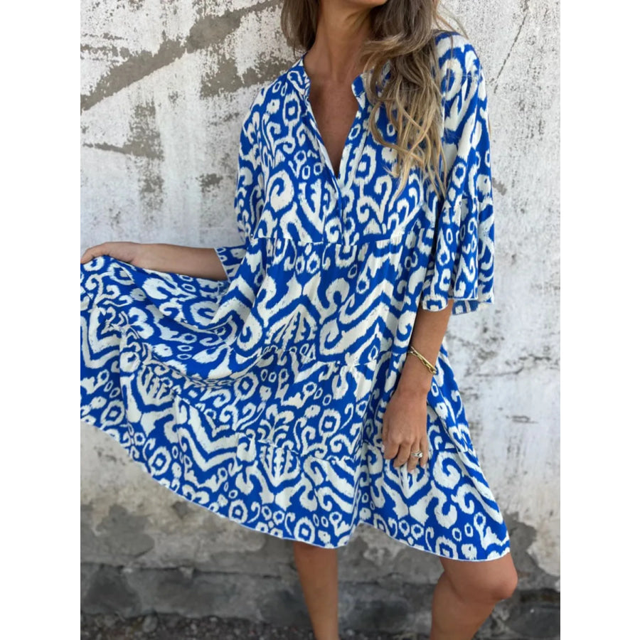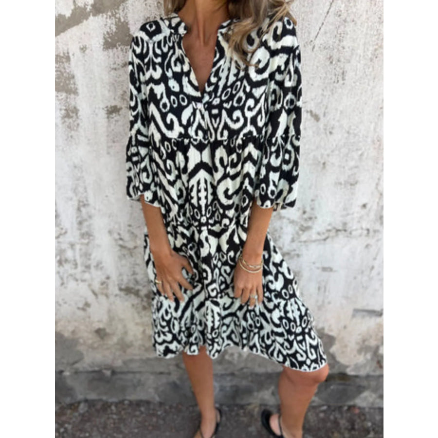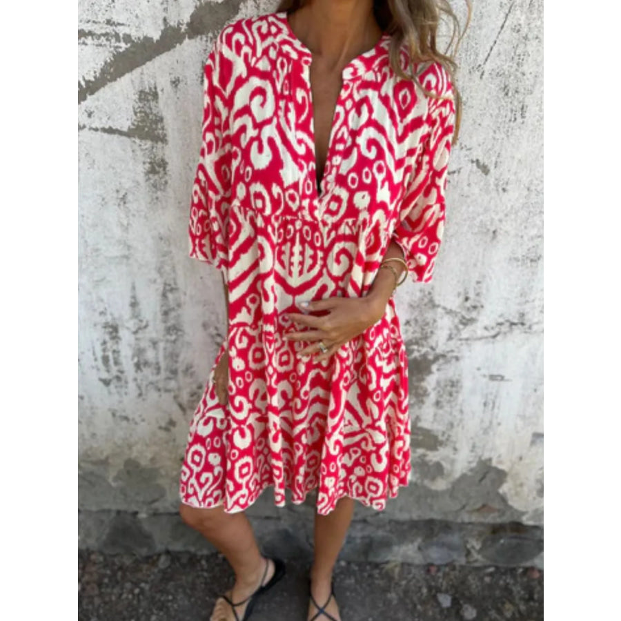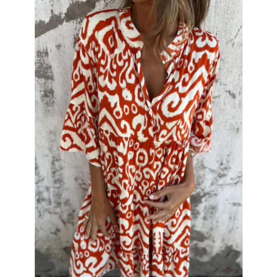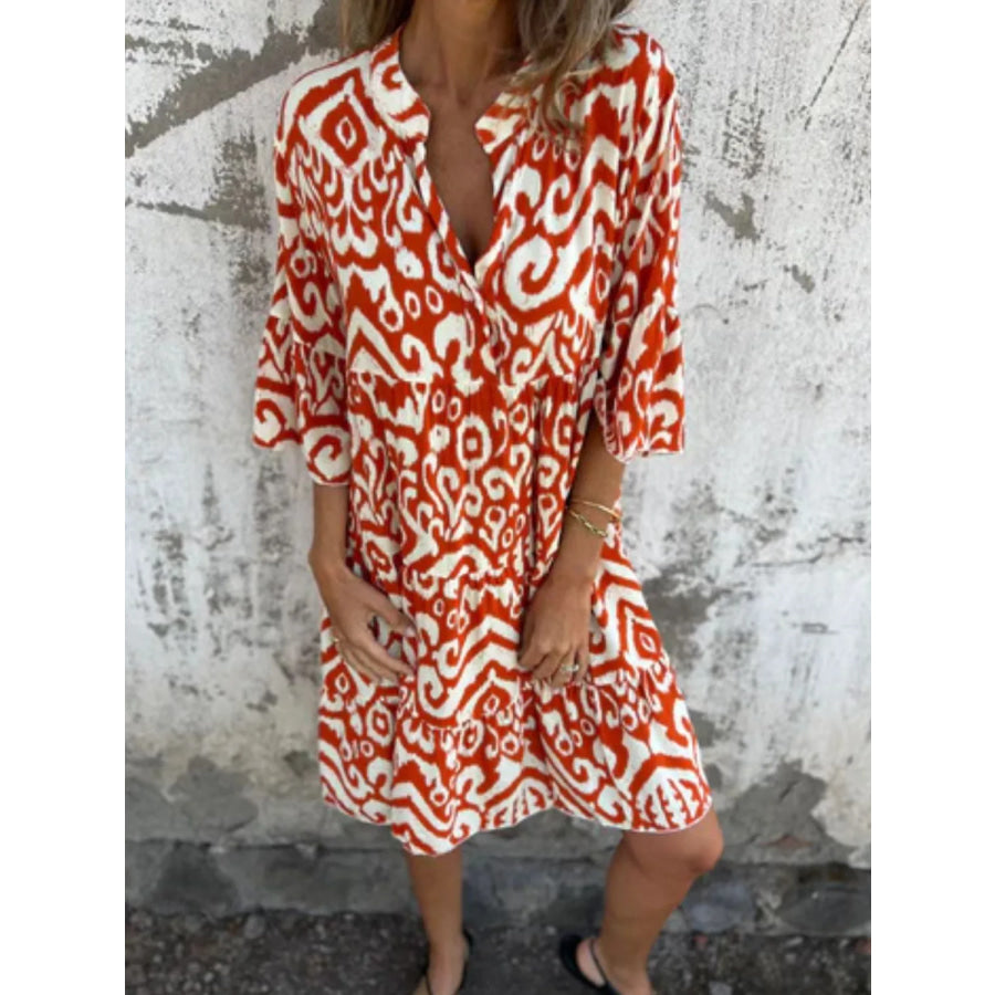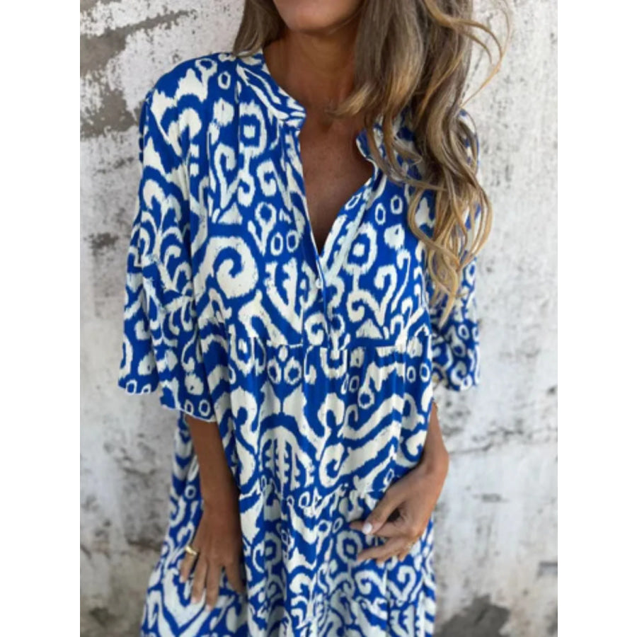 Full Size Printed Notched Half Sleeve Dress Plus Size