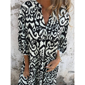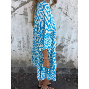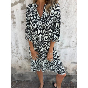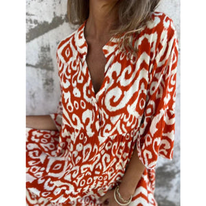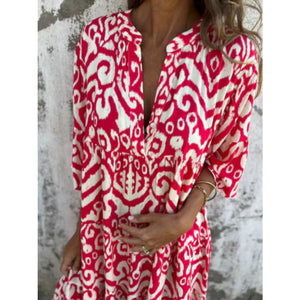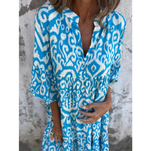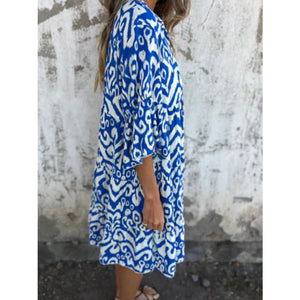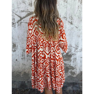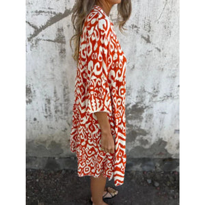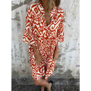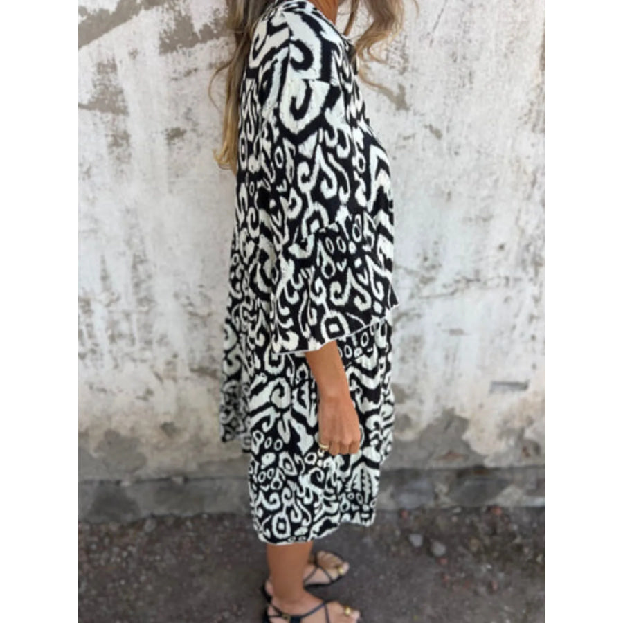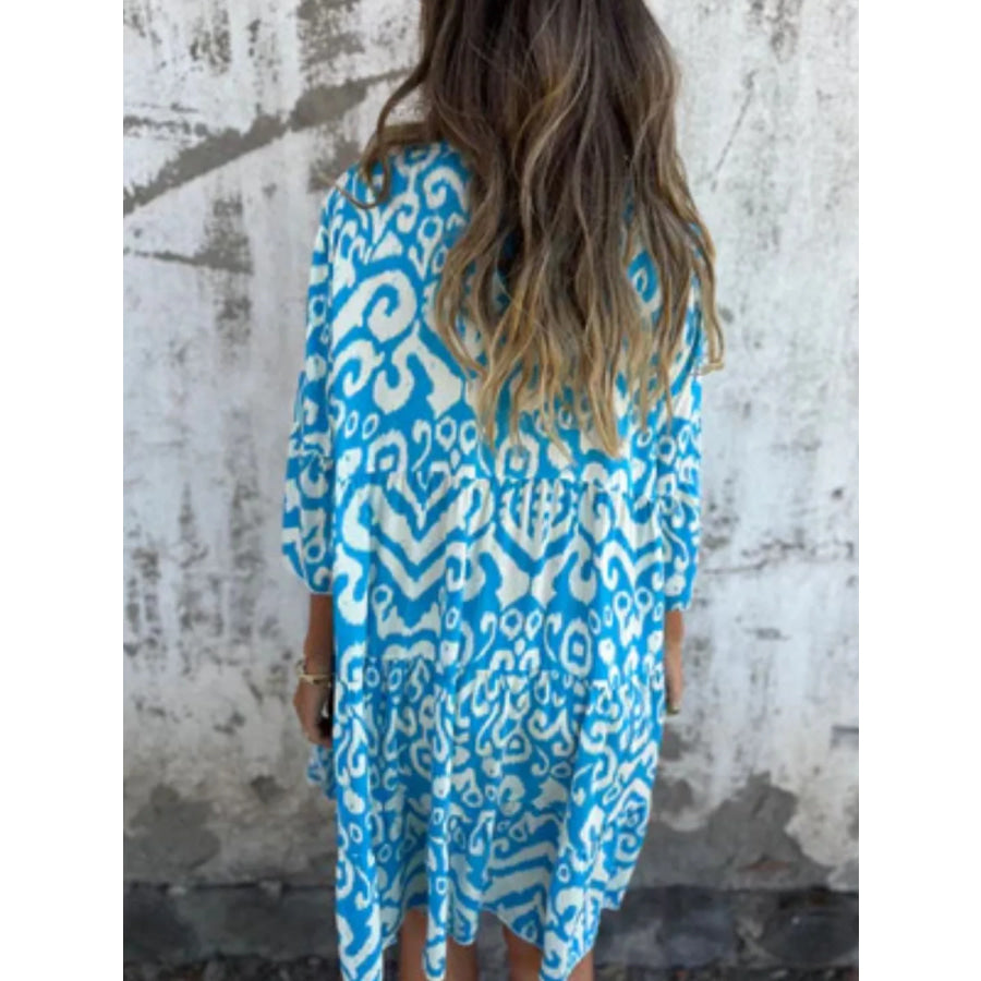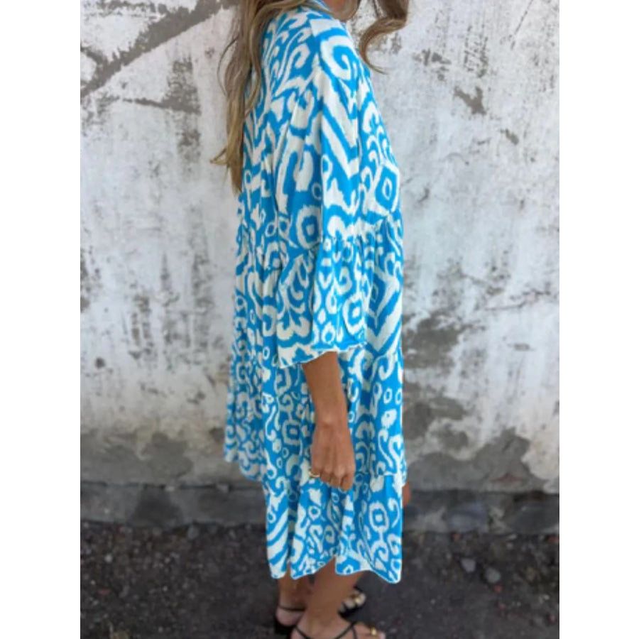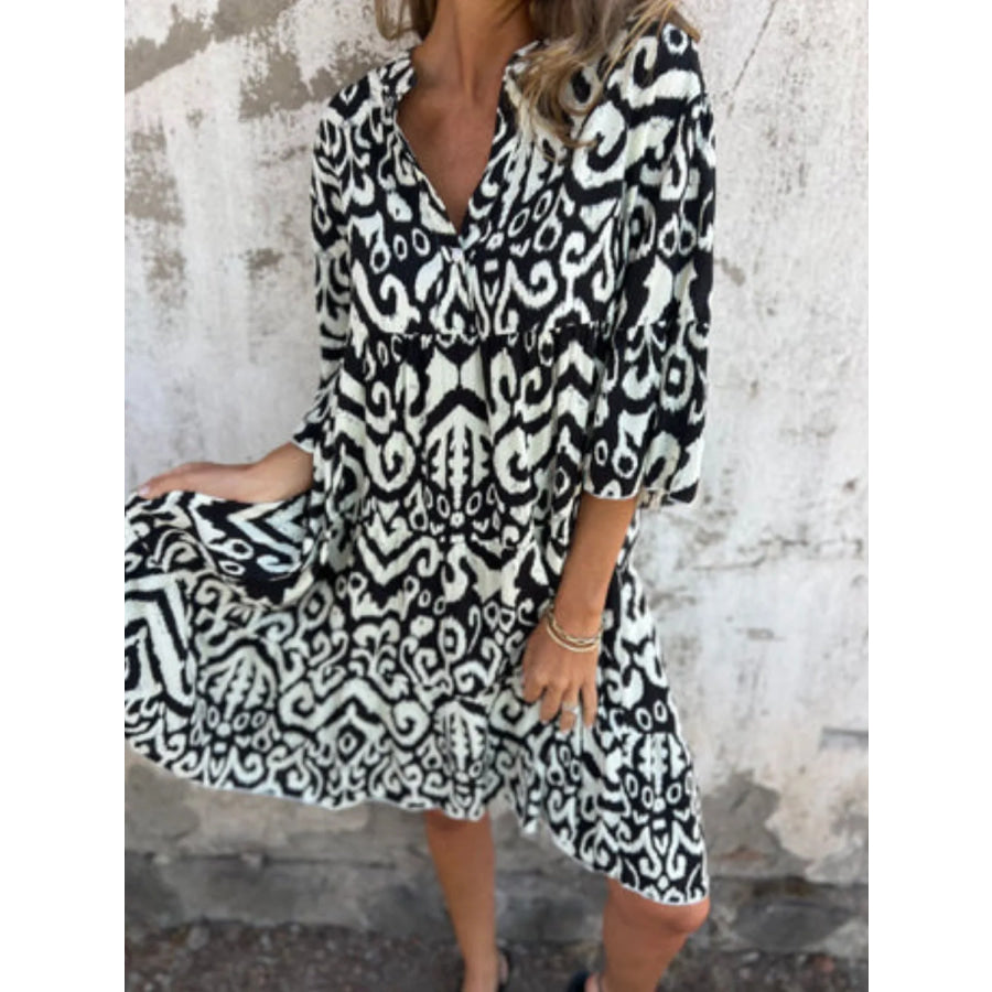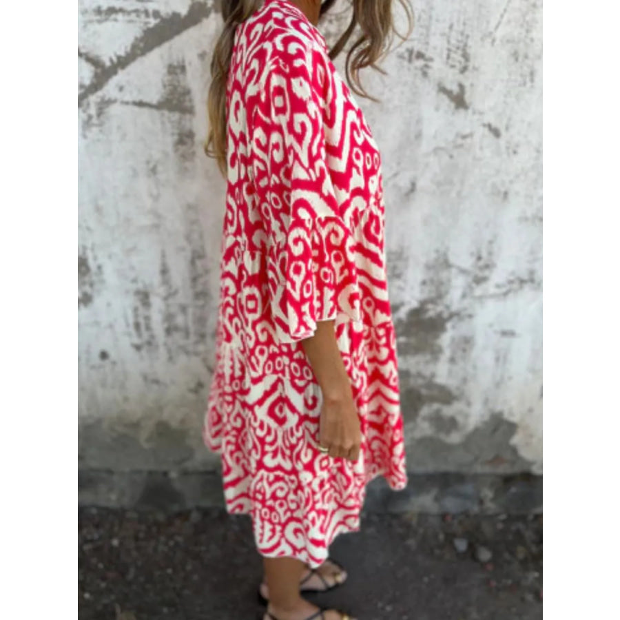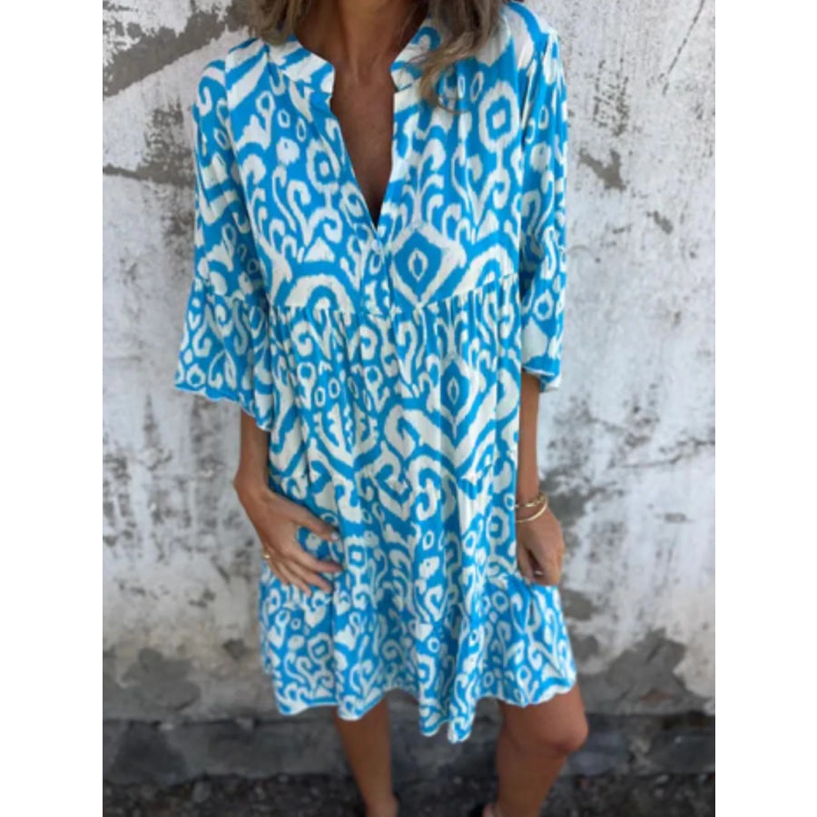 Full Size Printed Notched Half Sleeve Dress Plus Size