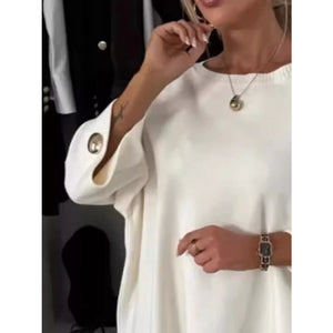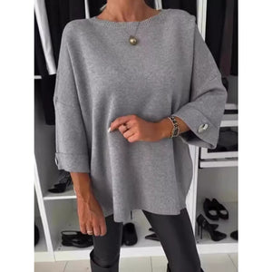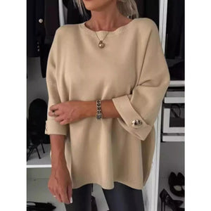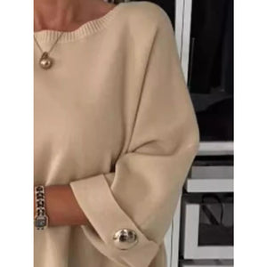 Full Size Round Neck Drop Shoulder Top with Ribbed Trim Plus Size