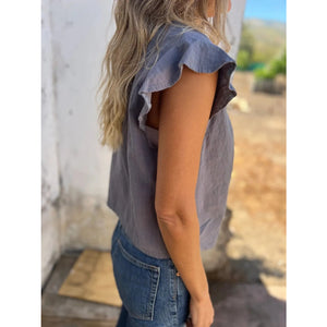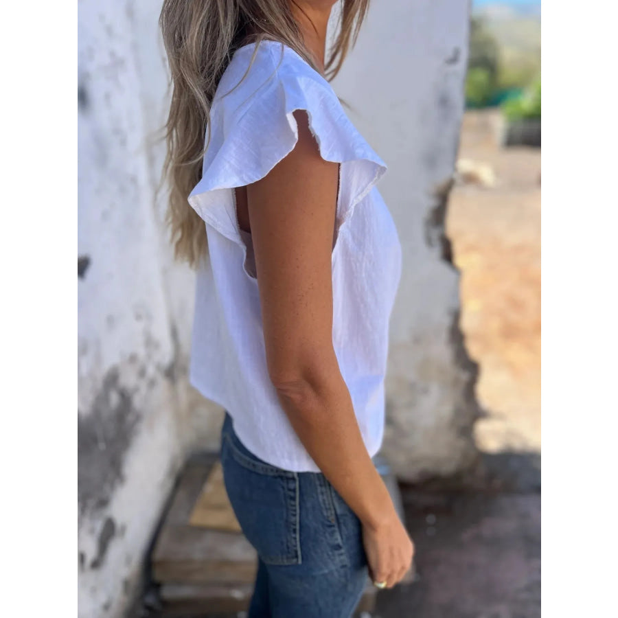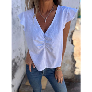 Full Size Ruched V-Neck Cap Sleeve Blouse Plus Size