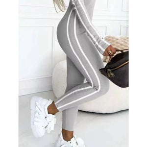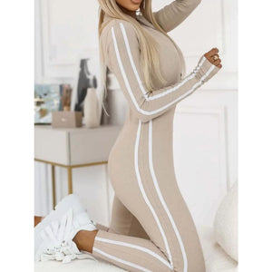 Full Size Stripe Zip-Front Long Sleeve Jumpsuit Plus Size