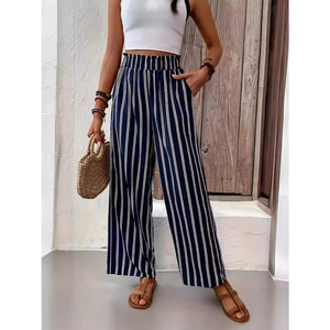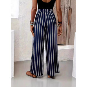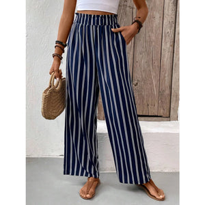 Full Size Striped High Waist Wide Leg Pants Plus Size