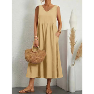 Full Size V-Neck Sleeveless Dress with Pockets Plus Size