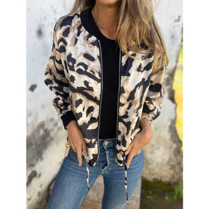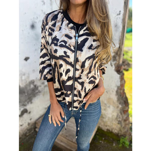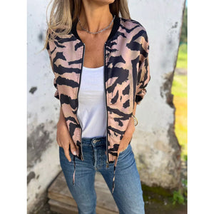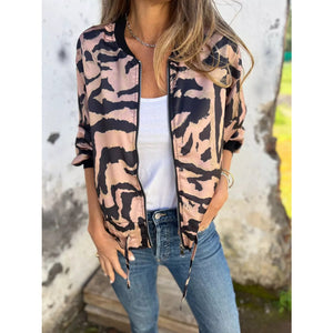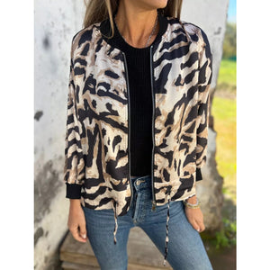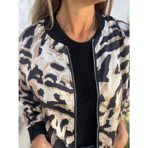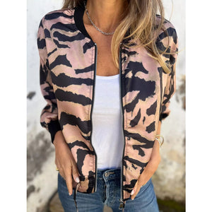 Full Size Zip Up Zebra Print Bomber Jacket Plus Size